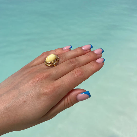 Pierścionek Bursztynowa Elegancja, Mleczny, Pozłacane Srebro