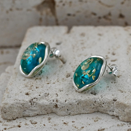 Kolczyki Sztyfty Bursztynowa Aura, Koniak, Pozłacane Srebro 925