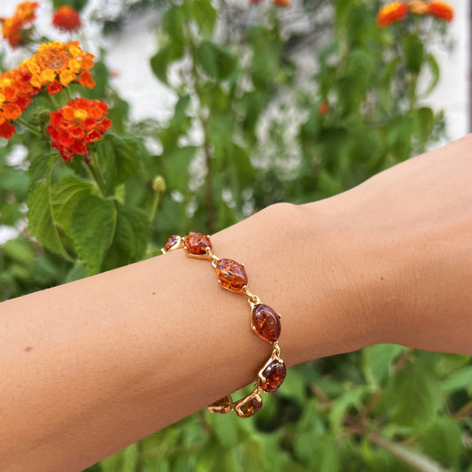 Bransoletka Bursztynowy Blask, Koniak, Pozłacane Srebro 925