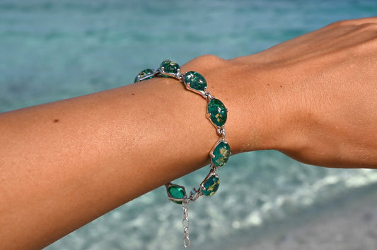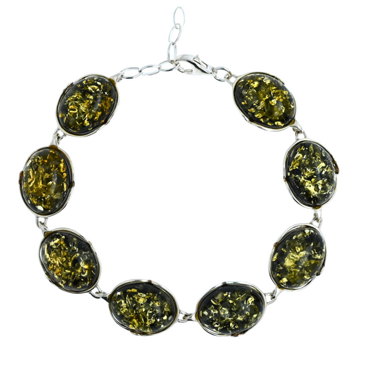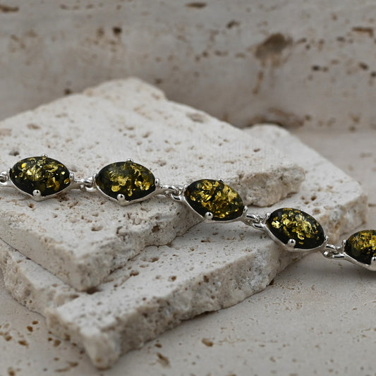 Bransoletka Bursztynowy Blask, Zielona, Srebro 925