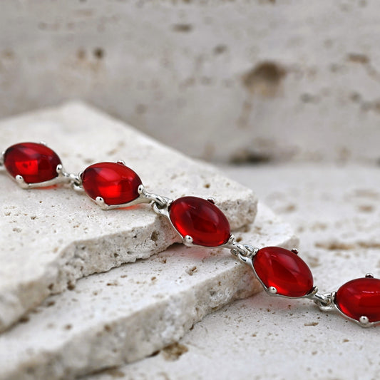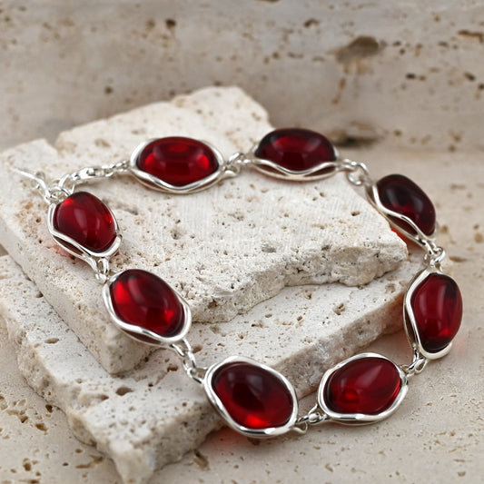 Bransoletka Bursztynowy Blask, Czerwony, Srebro 925