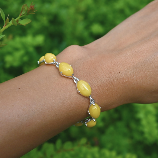 Bransoletka Bursztynowy Blask, Mleczny, Srebro 925
