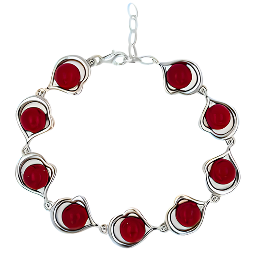 Bransoletka Bursztynowe Serce, Czerwony, Srebro 925