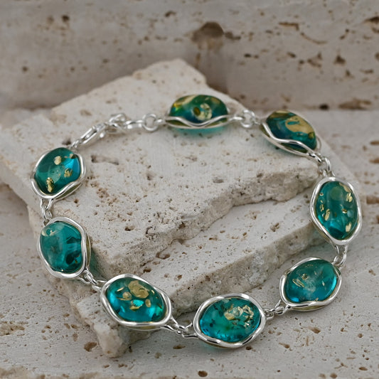 Bransoletka Bursztynowa Fala, Niebieski, Srebro 925