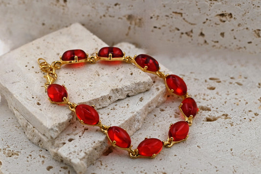 Bransoletka Bursztynowy Blask, Czerwony, Pozłacane srebro 925