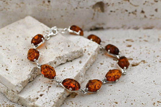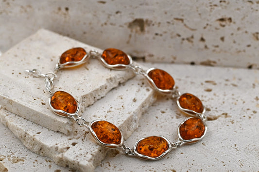 Bransoletka Bursztynowa Harmonia, Koniak, Srebro 925