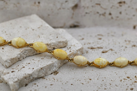 Bransoletka Bursztynowy Blask, Mleczna, Pozłacane srebro