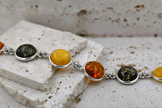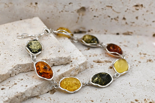 Bransoletka Bursztynowa Fala, Wielokolorowa, Srebro