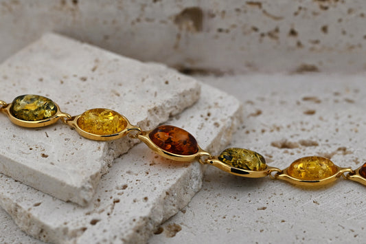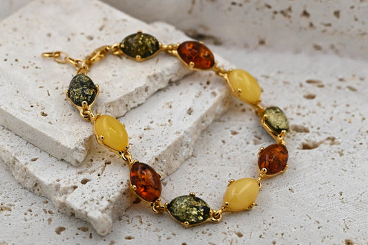 Bransoletka z Bursztynem Bałtyckim, Wielokolorowa, Pozłacane Srebro 925
