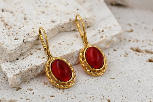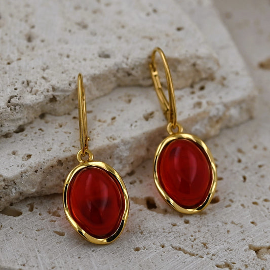 Earrings Amber Elegance, Red, Gold-plated Silver 925