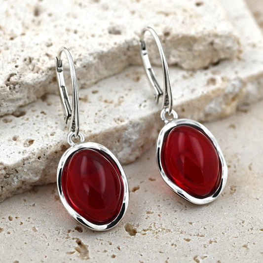Kolczyki Bursztynowa Fala, Czerwony, Srebro 925