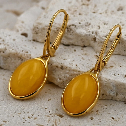 Kolczyki Bursztynowy Klasyk, Żółty, Pozłacane srebro