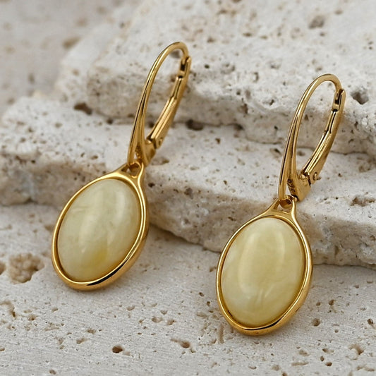 Kolczyki Bursztynowy Klasyk, Mleczny, Pozłacane Srebro