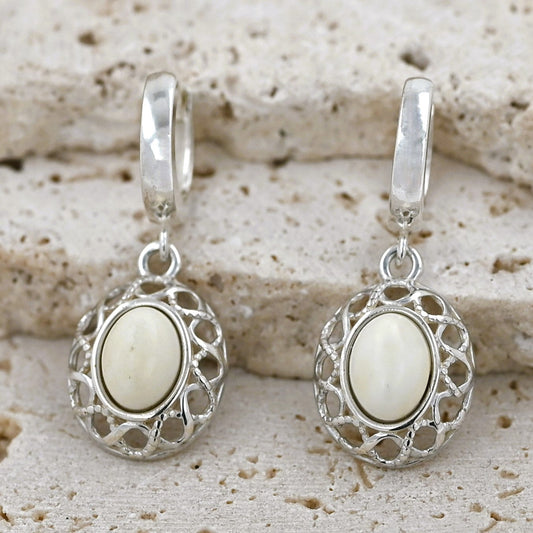 Kolczyki Bursztynowa Gracja, Mleczny, Srebro 925