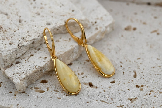 Kolczyki Bursztynowa Gracja, Mleczny, Pozłacane Srebro 925