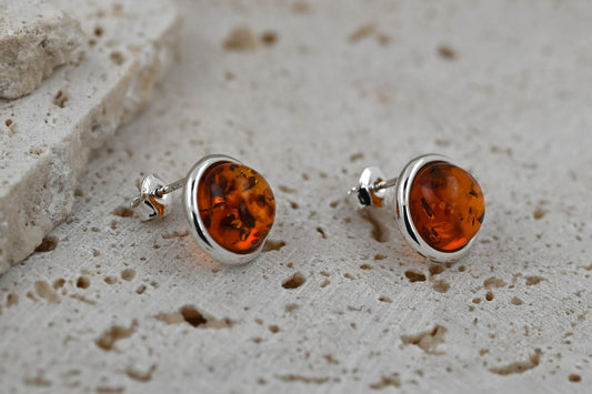 Amber Aura Stud Earrings, Cognac, Silver 925