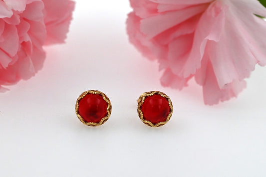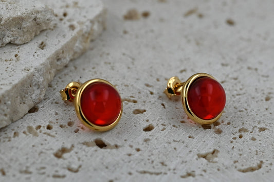 Amber Aura Stud Earrings, Red, Gold Plated Silver 925