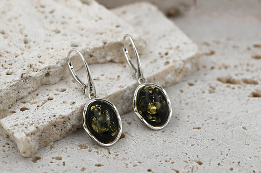Amber Wave Earrings, Green, Silver 925