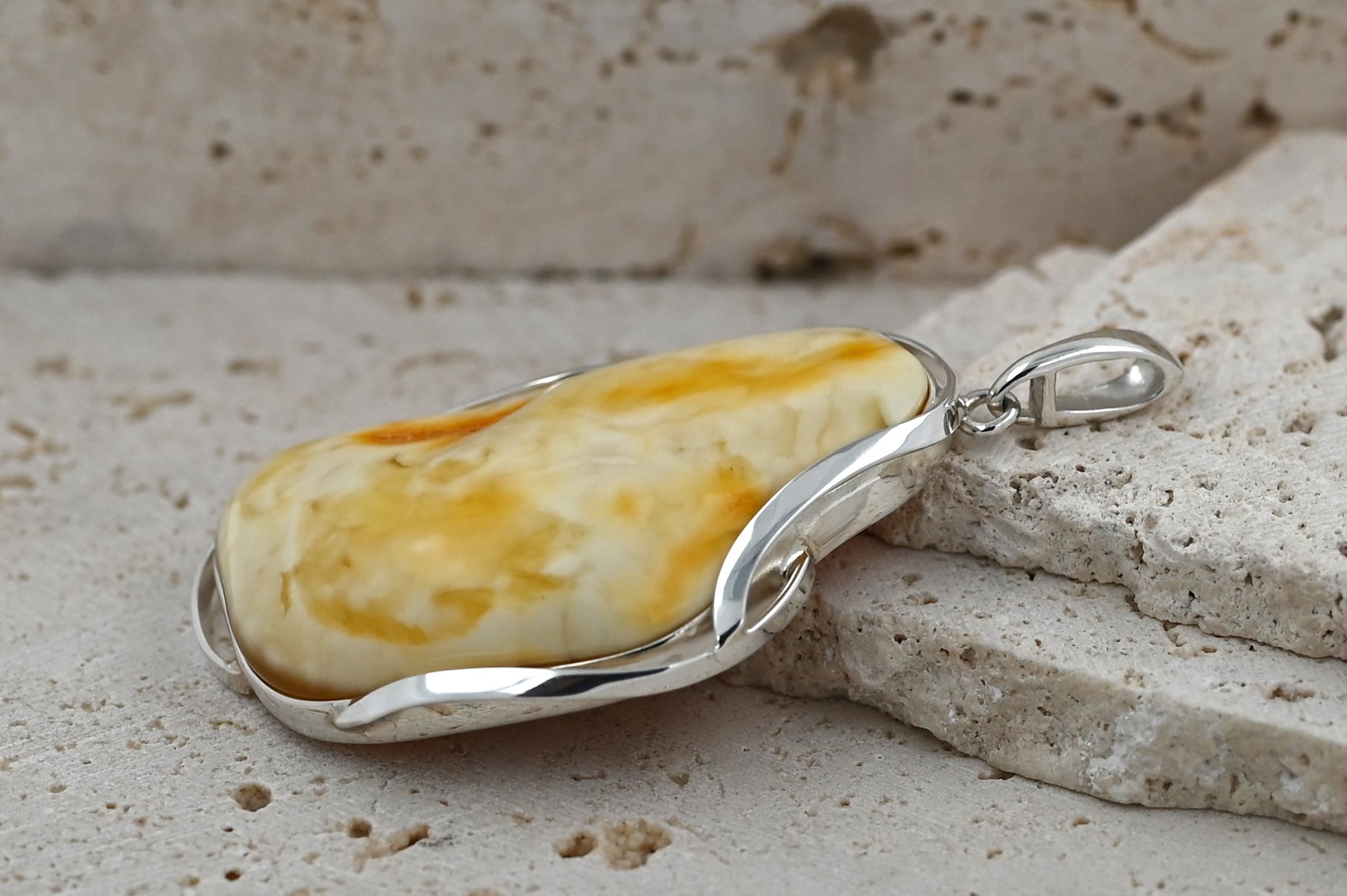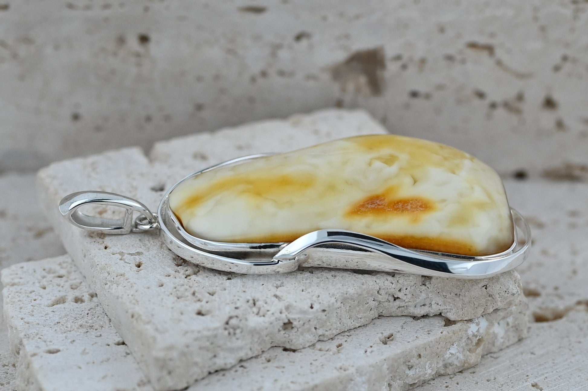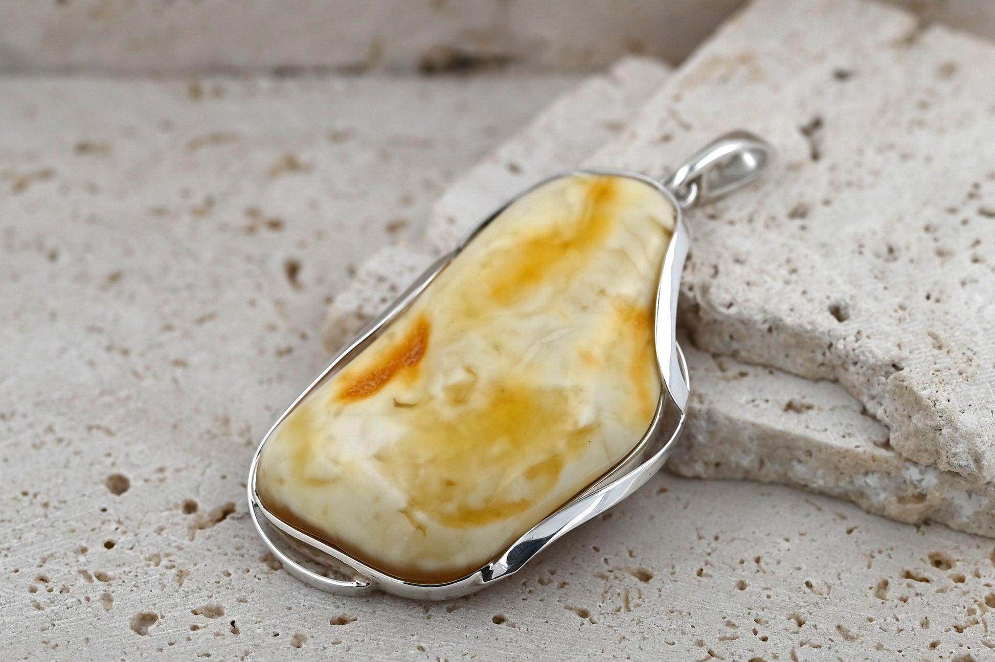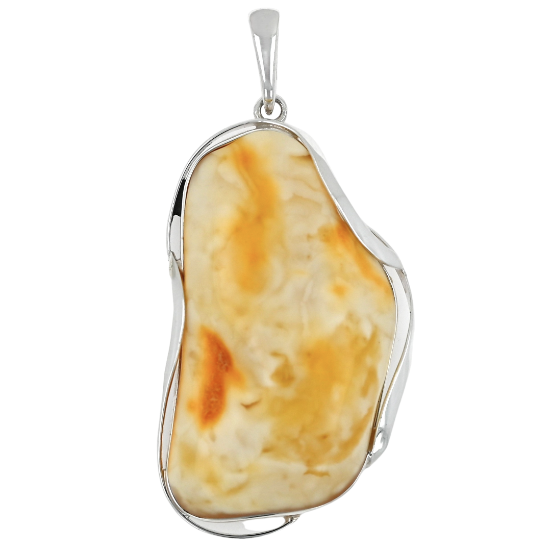 Duży Wisiorek z Naturalnym Mlecznym Bursztynem Bałtyckim – Unikat, Srebro 925