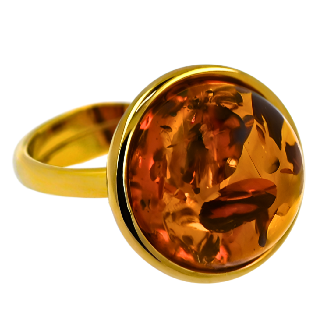 Pierścionek Bursztynowa Aura, Koniakowy, Pozłacane srebro
