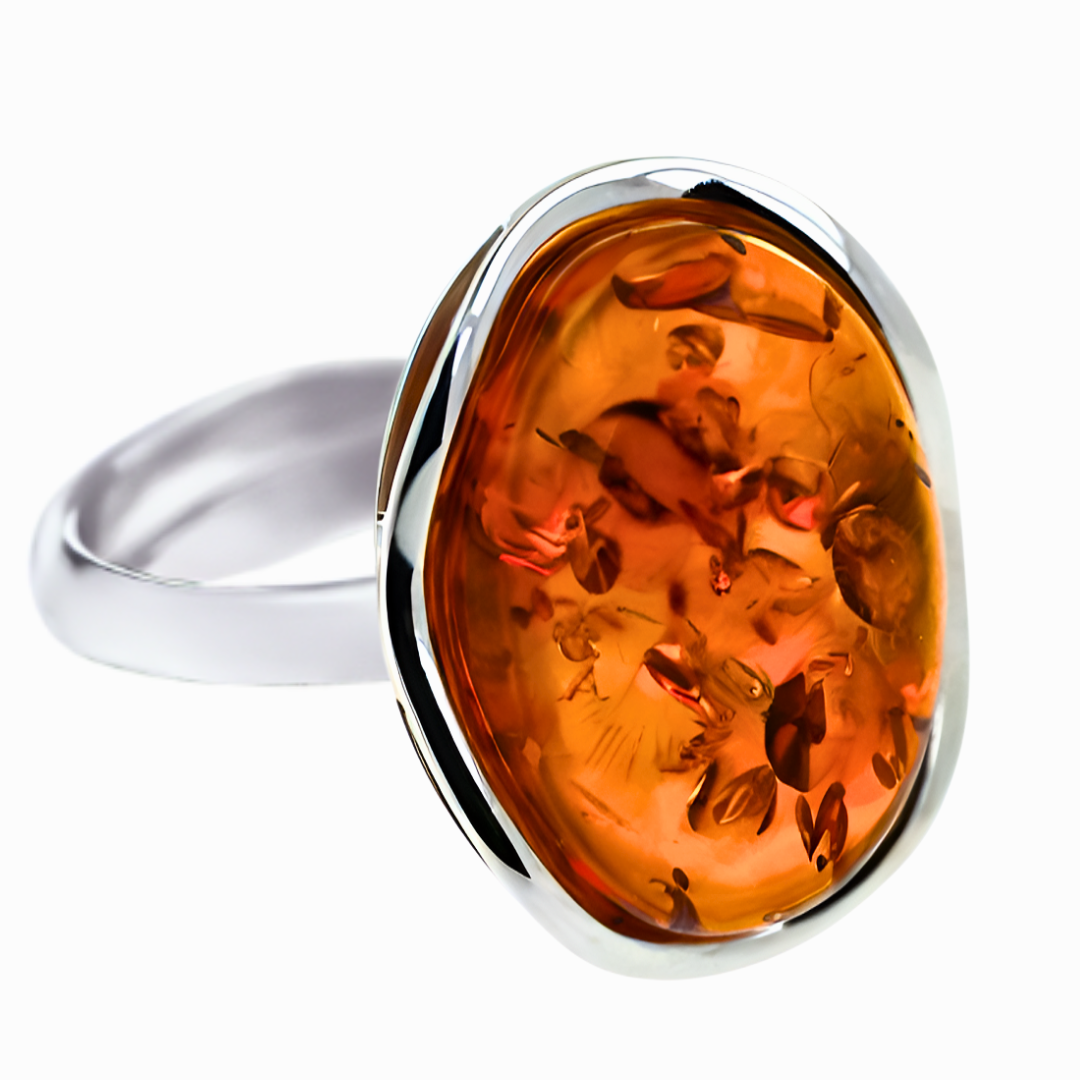 Bursztyn w odcieniu koniaku, osadzony w srebrze najwyższej próby, emanuje ciepłem i szykiem, podkreślając swój naturalny blask. To połączenie klasycznej finezji z nowoczesnym stylem sprawia, że nasz pierścień staje się niezwykłym dodatkiem do każdej stylizacji. Odkryj jego niepowtarzalny urok i podkreśl swój wyjątkowy styl już teraz!