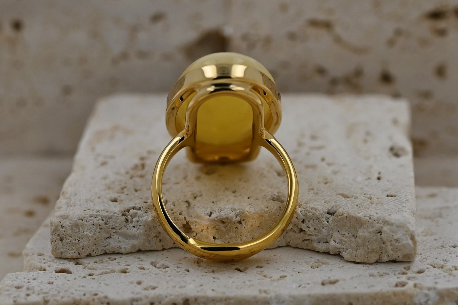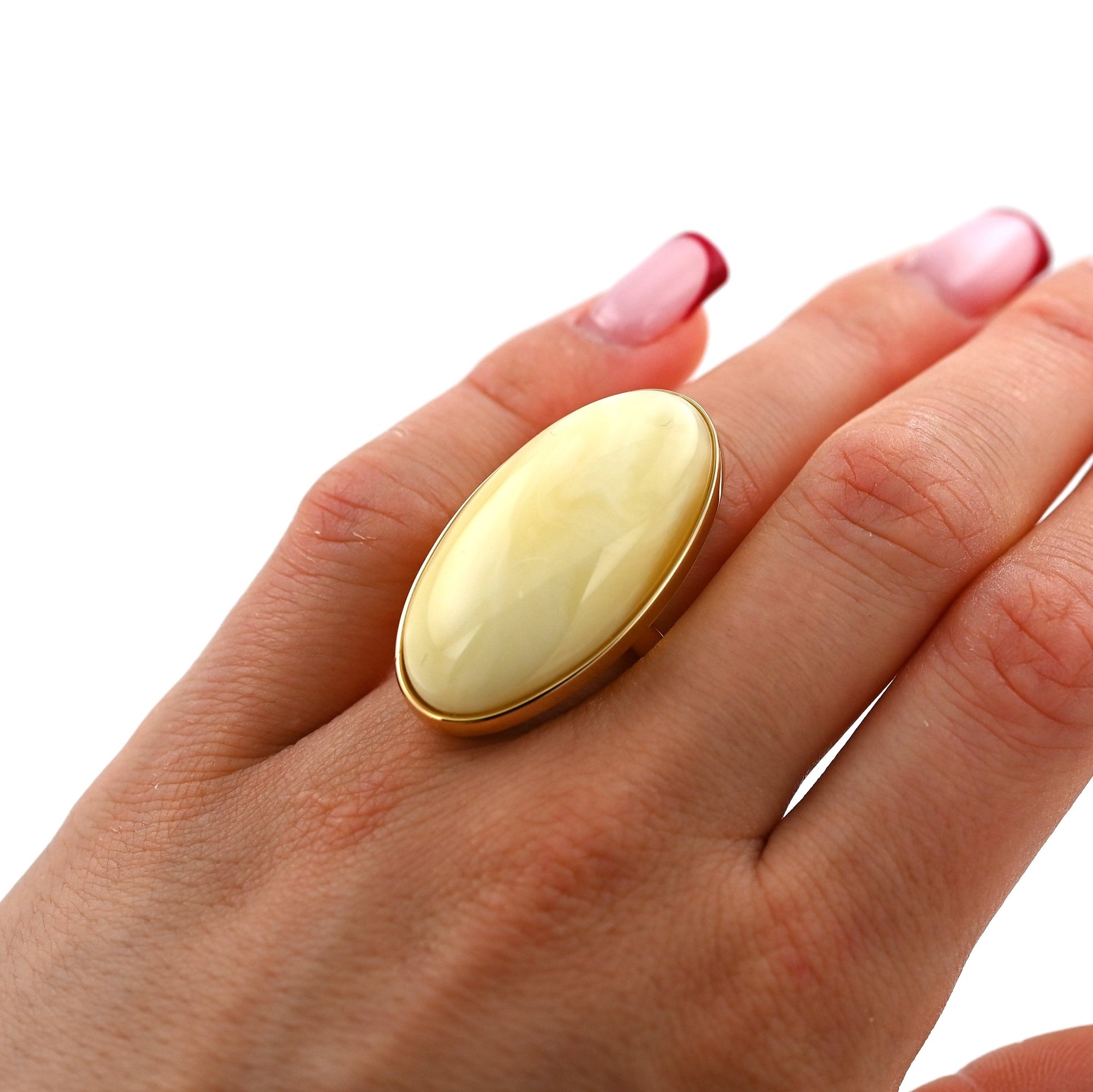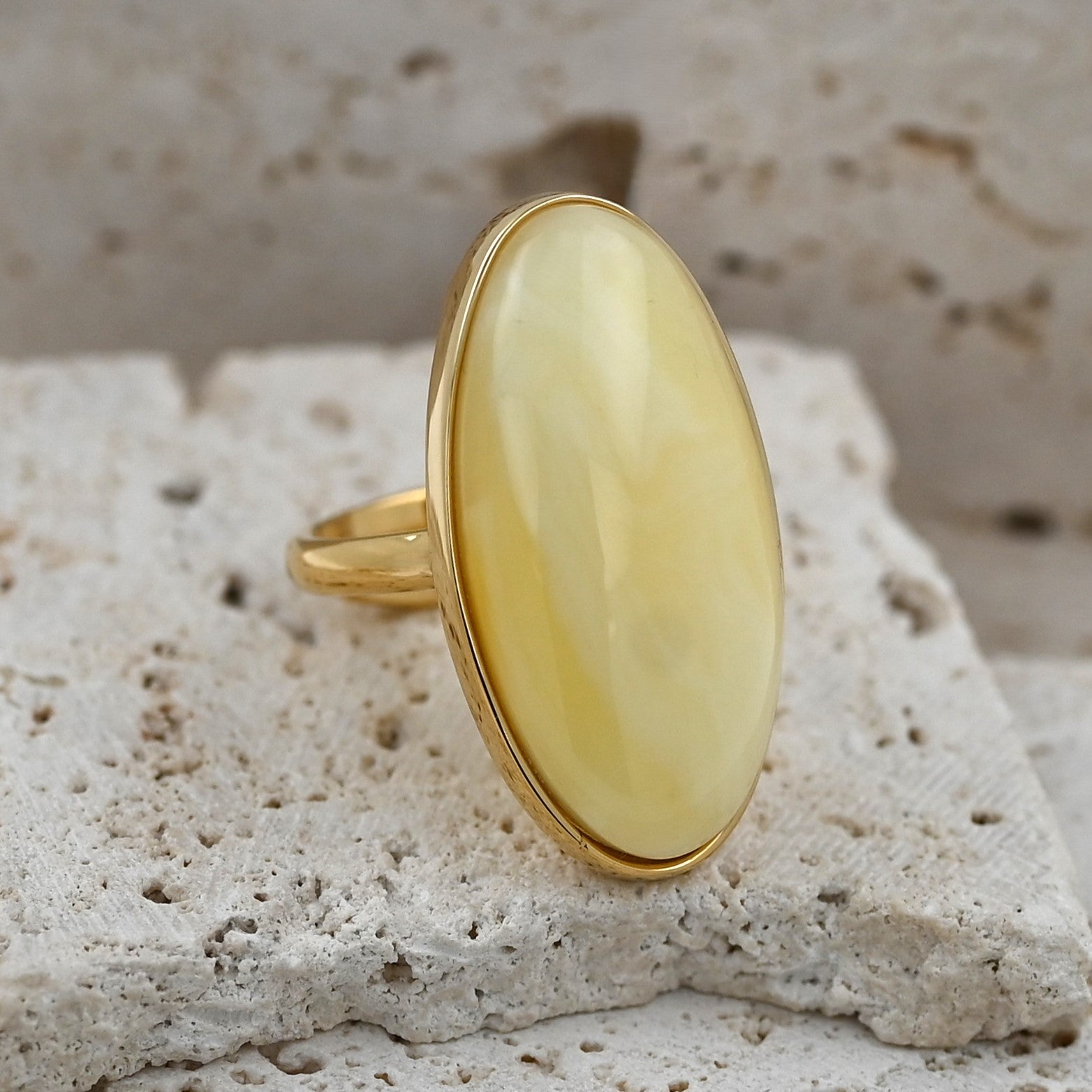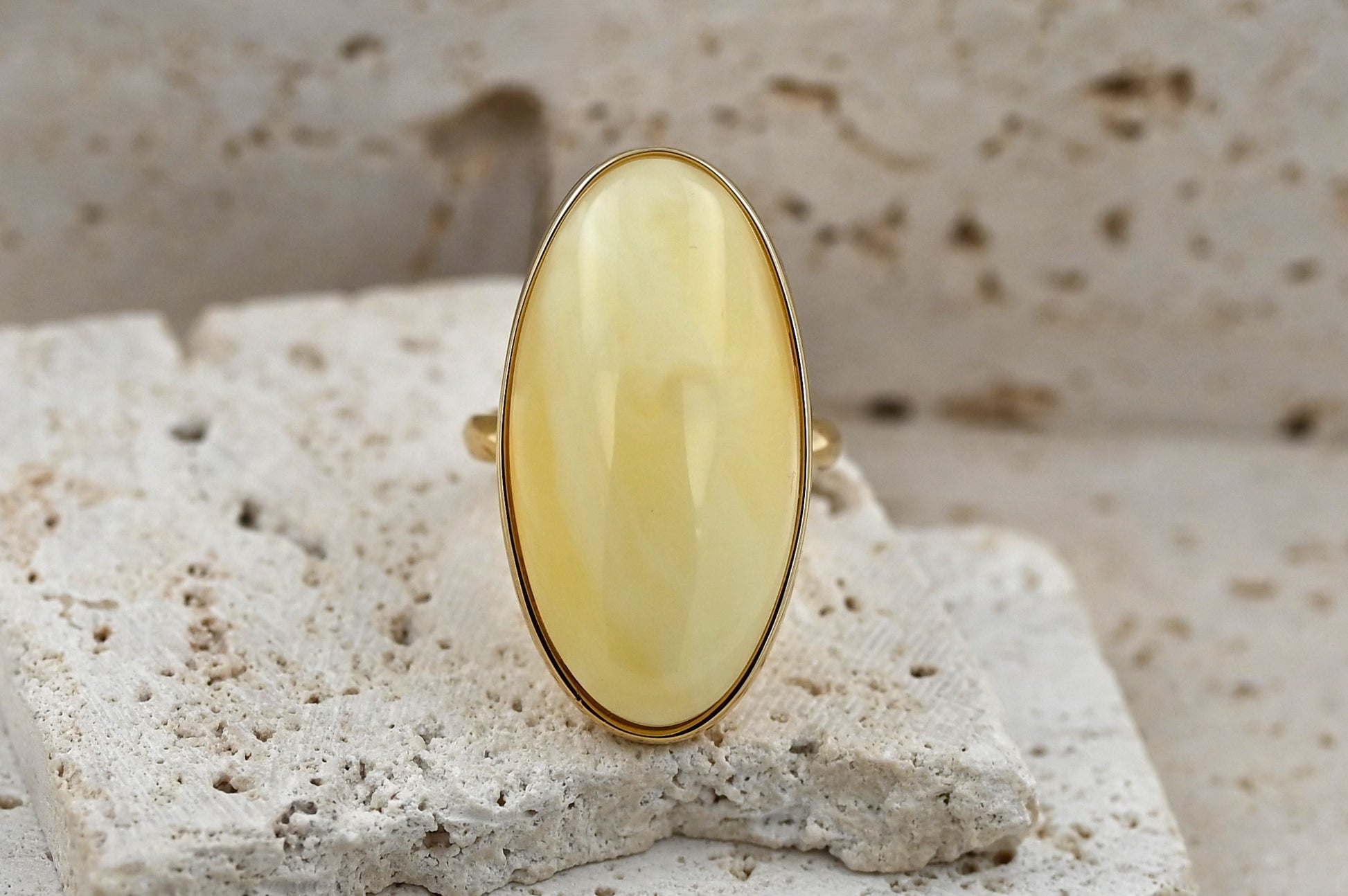 Duży Unikatowy Pierścionek Mleczny Bursztynowy, Unikat, Pozłacane Srebro 925