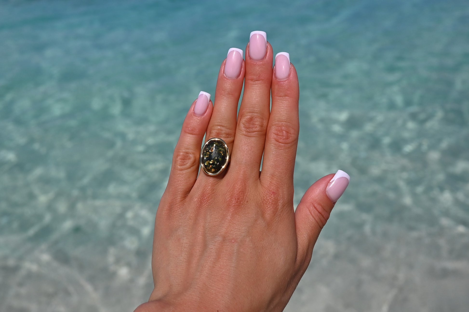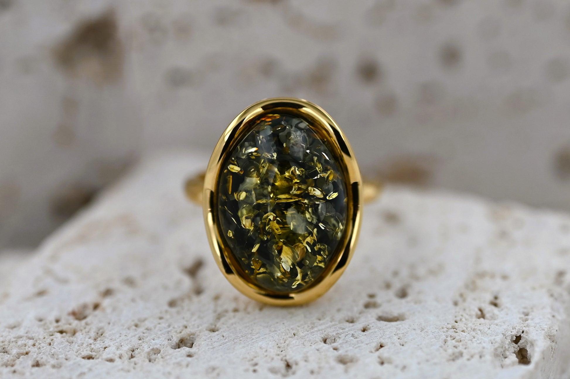 Odkryj magię zielonego bursztynu bałtyckiego, osadzonego w srebro najwyższej próby pokryte 24-karatowym złotem. Każdy błyszczący klejnot nosi w sobie tajemnicę i historię starożytnych lasów, wprowadzając nas w świat ponadczasowego piękna. Poczuj ducha przeszłości, który ożywa w teraźniejszości dzięki naszej wyjątkowej kolekcji.