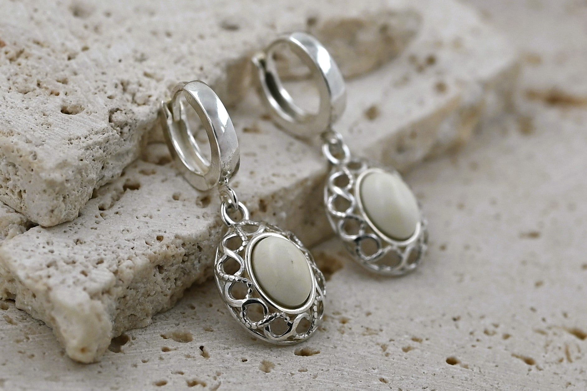 Odkryj subtelne piękno natury z naszymi kolczykami z naturalnym białym bursztynem bałtyckim, oprawionymi w srebro próby 925. To wyjątkowe połączenie klasy, delikatności i szlachetnego rzemiosła sprawia, że kolczyki stanowią doskonały wybór dla kobiet ceniących ponadczasową elegancję i naturalny blask bursztynu.