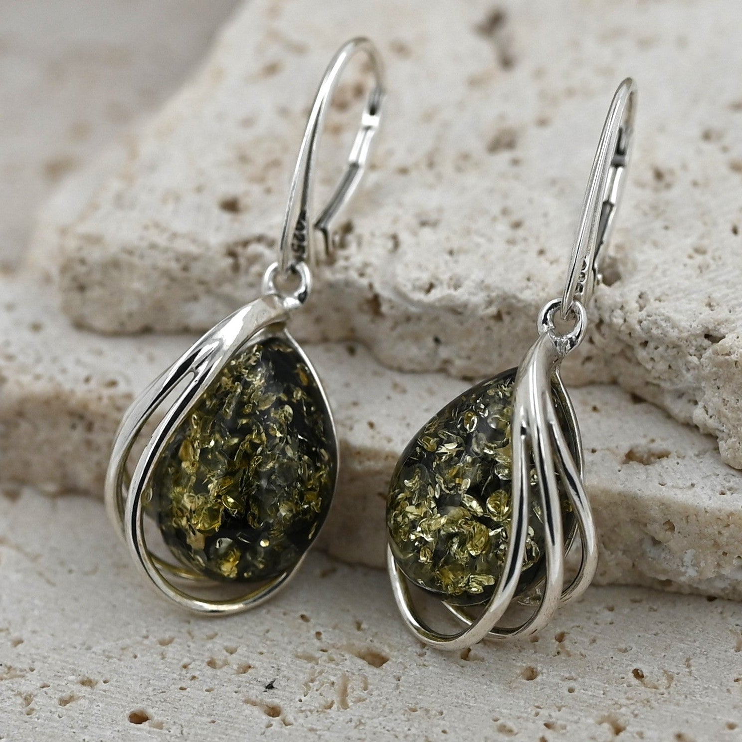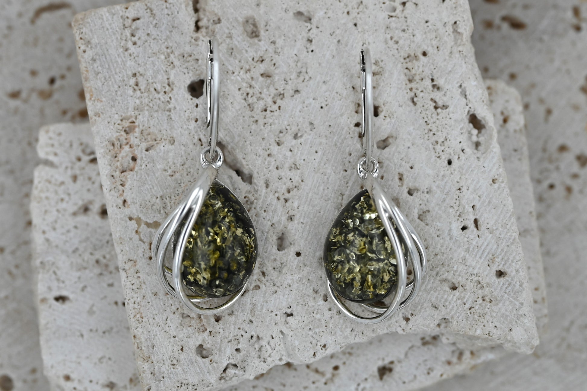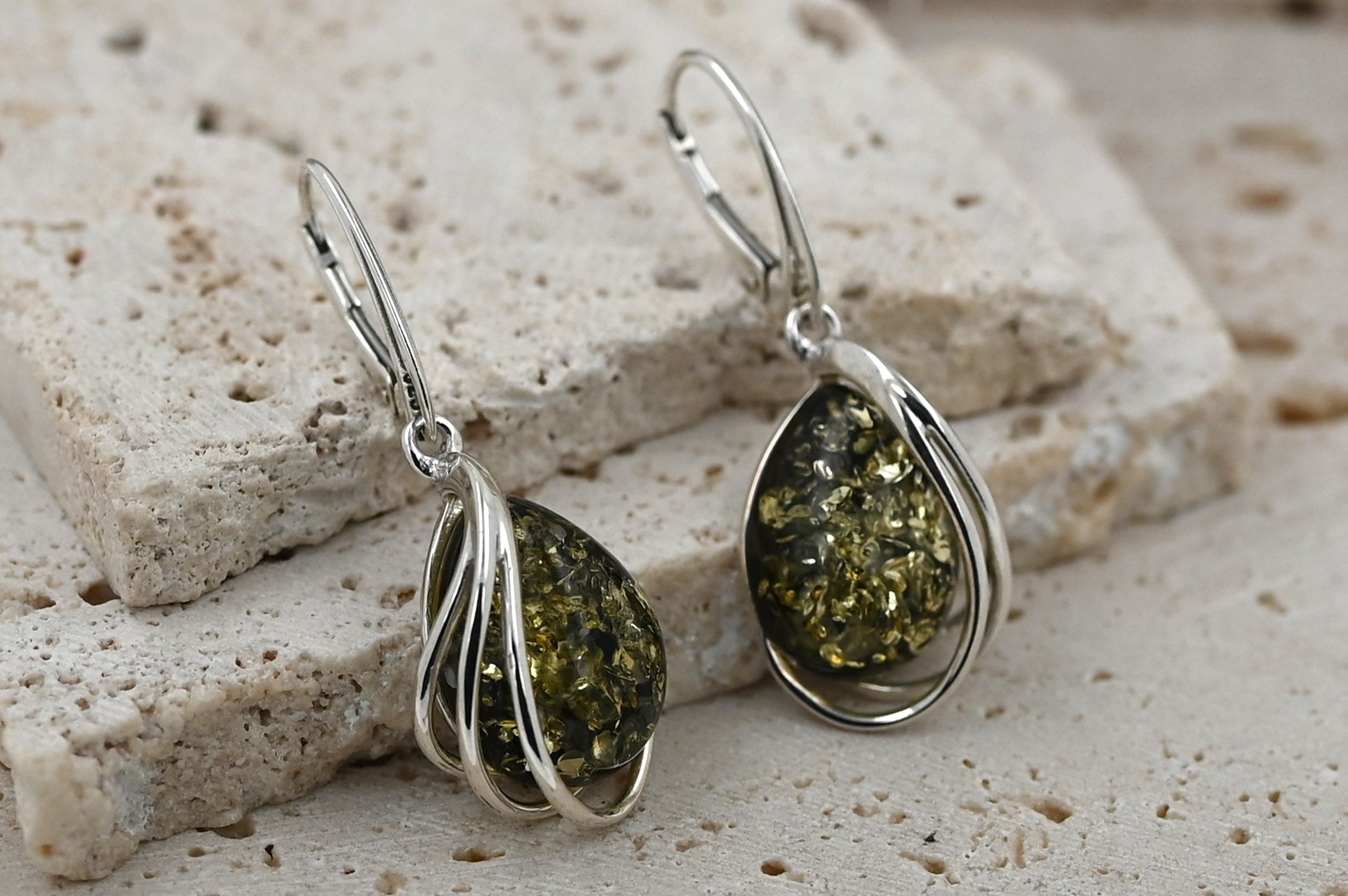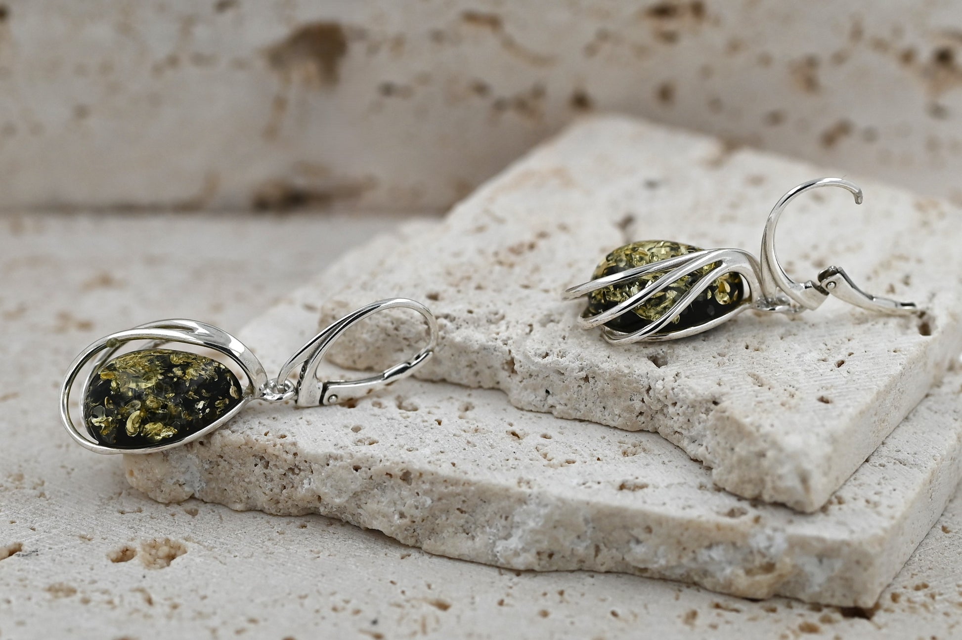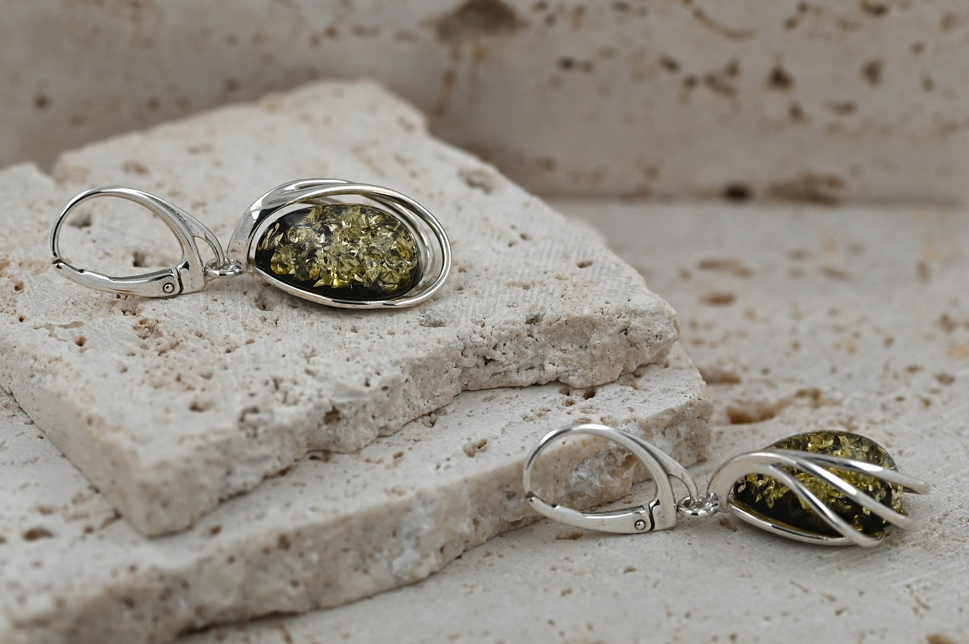 Odkryj urok srebrnych kolczyków z naturalnym bursztynem bałtyckim, które łączą w sobie elegancję i inspirację naturą. Ich głęboka, zielona barwa przyciąga wzrok i nadaje biżuterii wyjątkowego charakteru. Ręcznie wykonane z solidnego srebra próby 925, są odporne na codzienne użytkowanie, delikatne dla skóry i doskonale komponują się z kobiecą subtelnością i stylem.