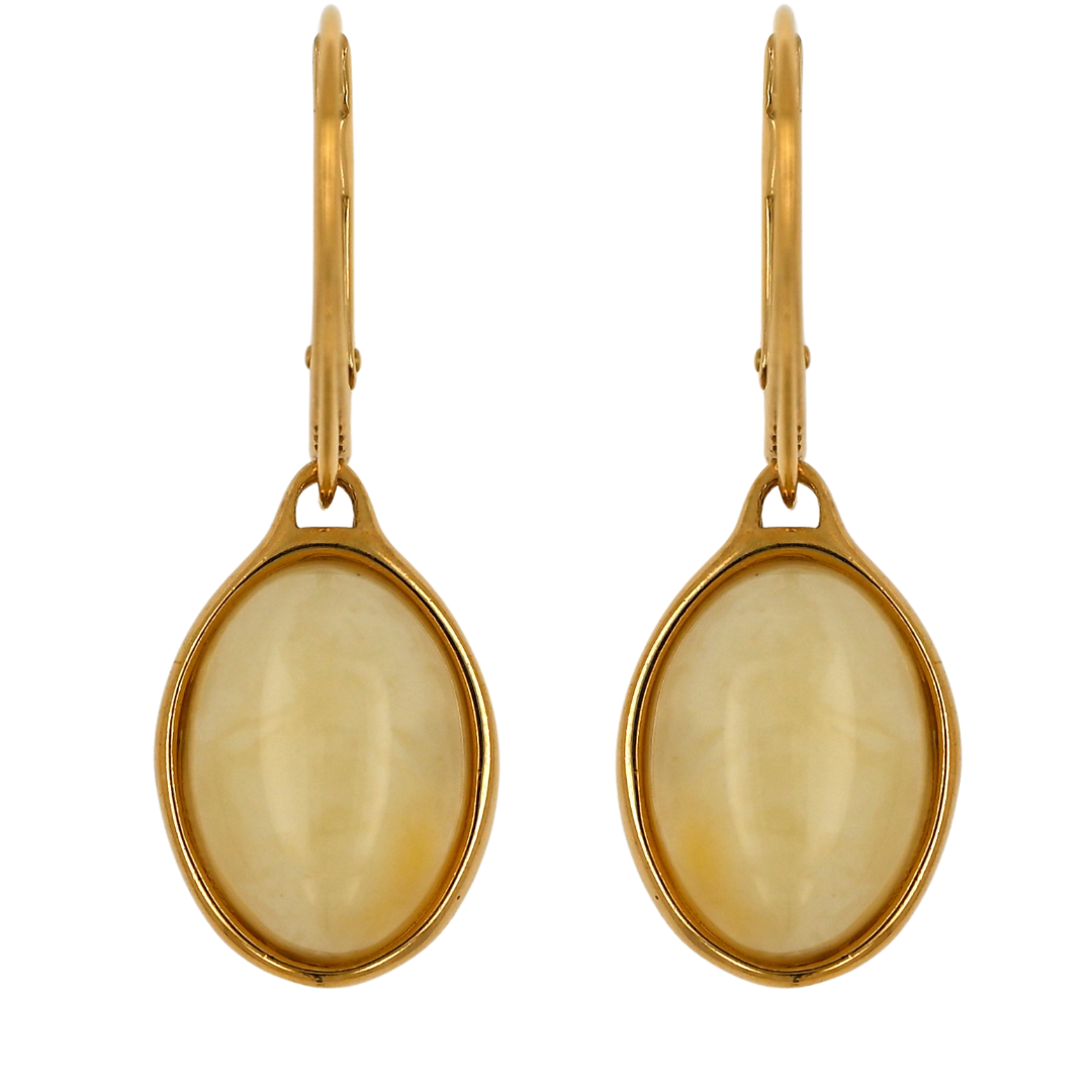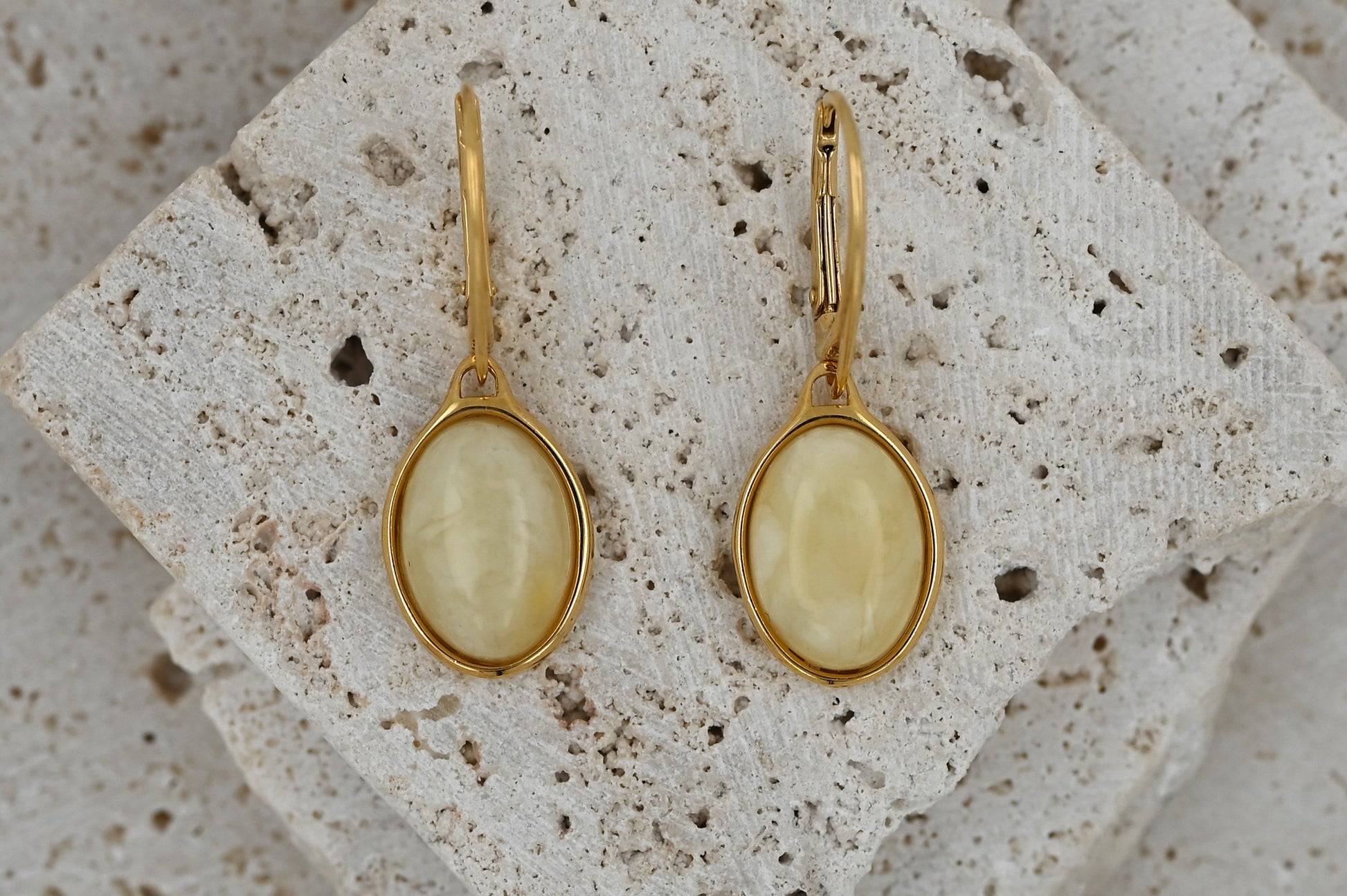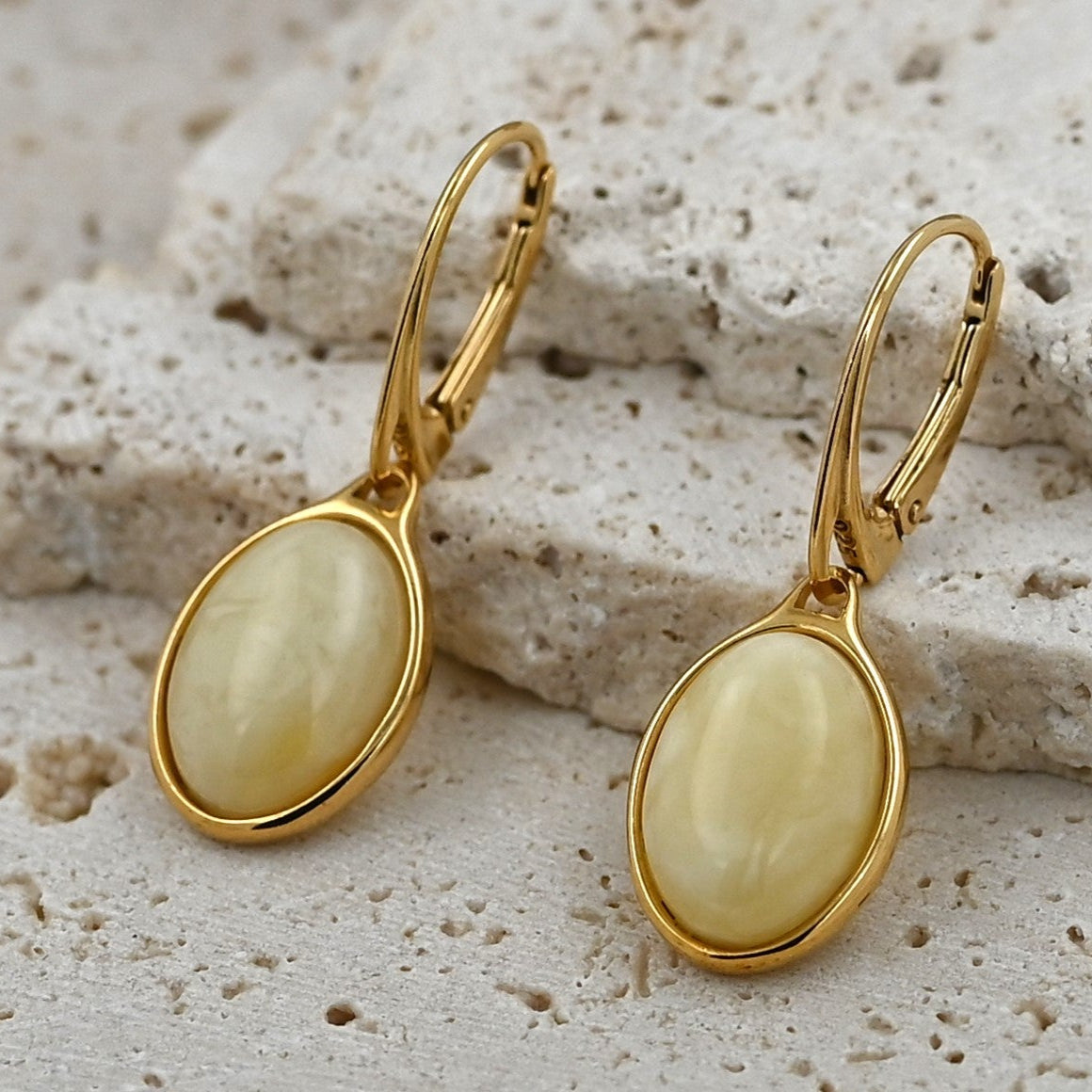 Prezentujemy kolczyki z mlecznym bursztynem bałtyckim w eleganckiej oprawie z pozłacanego srebra 925.