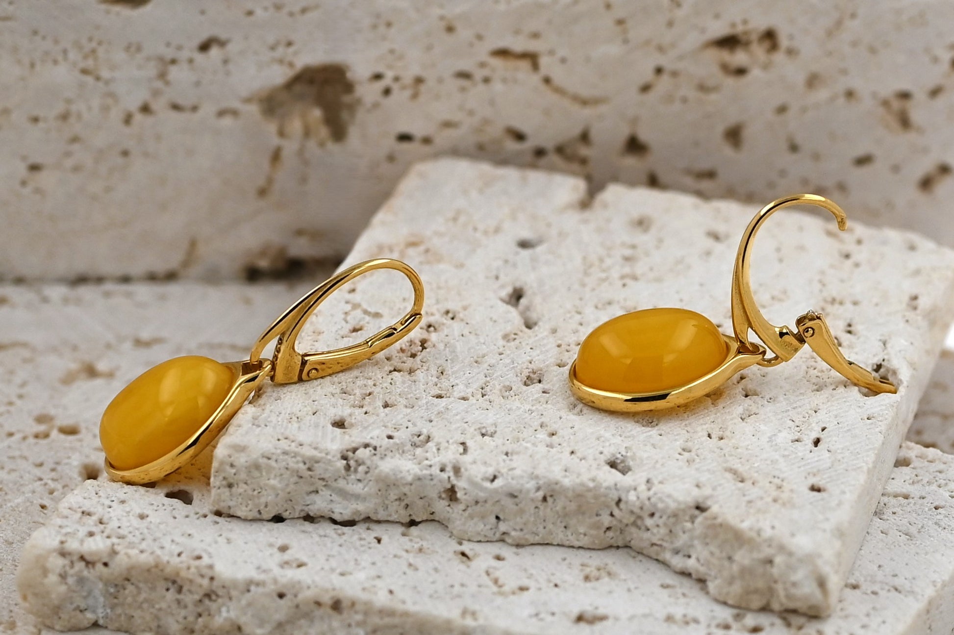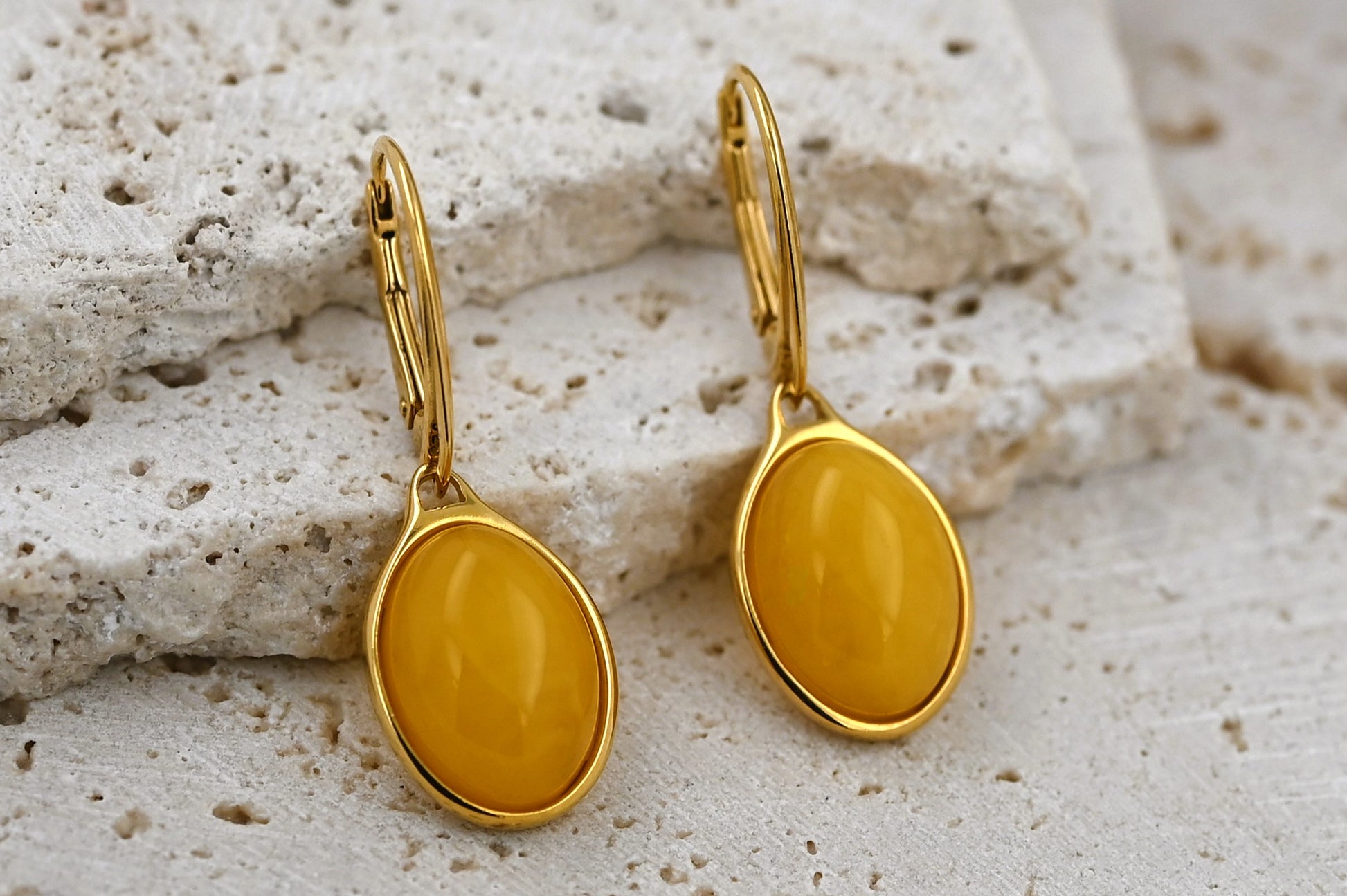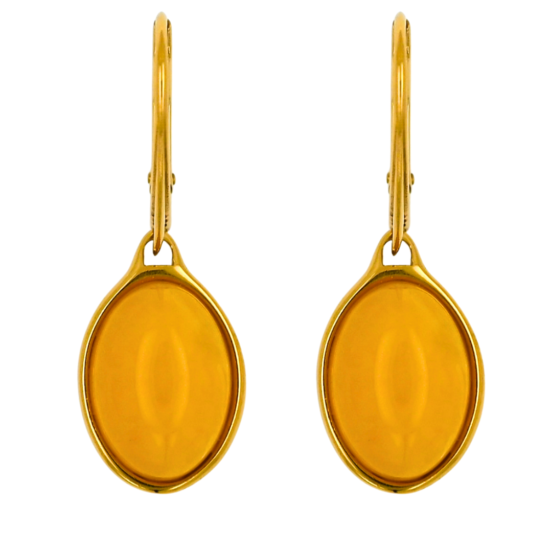 Prezentujemy kolczyki z naturalnym bursztynem bałtyckim, oprawione w pozłacane srebro 925. Ich owalny kształt i klasyczny design sprawiają, że są niezwykle uniwersalne – pasują zarówno do codziennych stylizacji, jak i eleganckich kreacji.