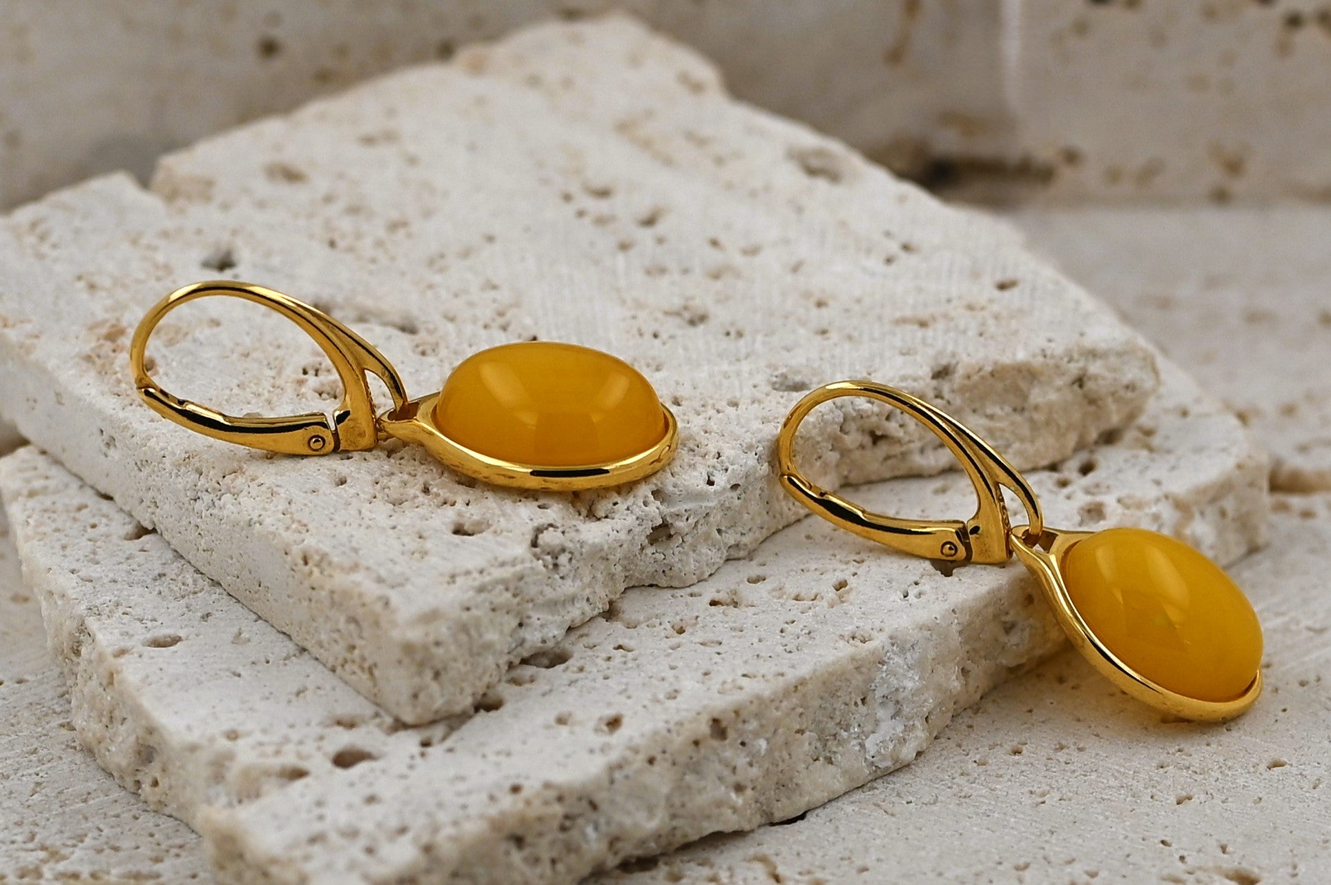 Kolczyki Bursztynowy Klasyk, Żółty, Pozłacane srebro