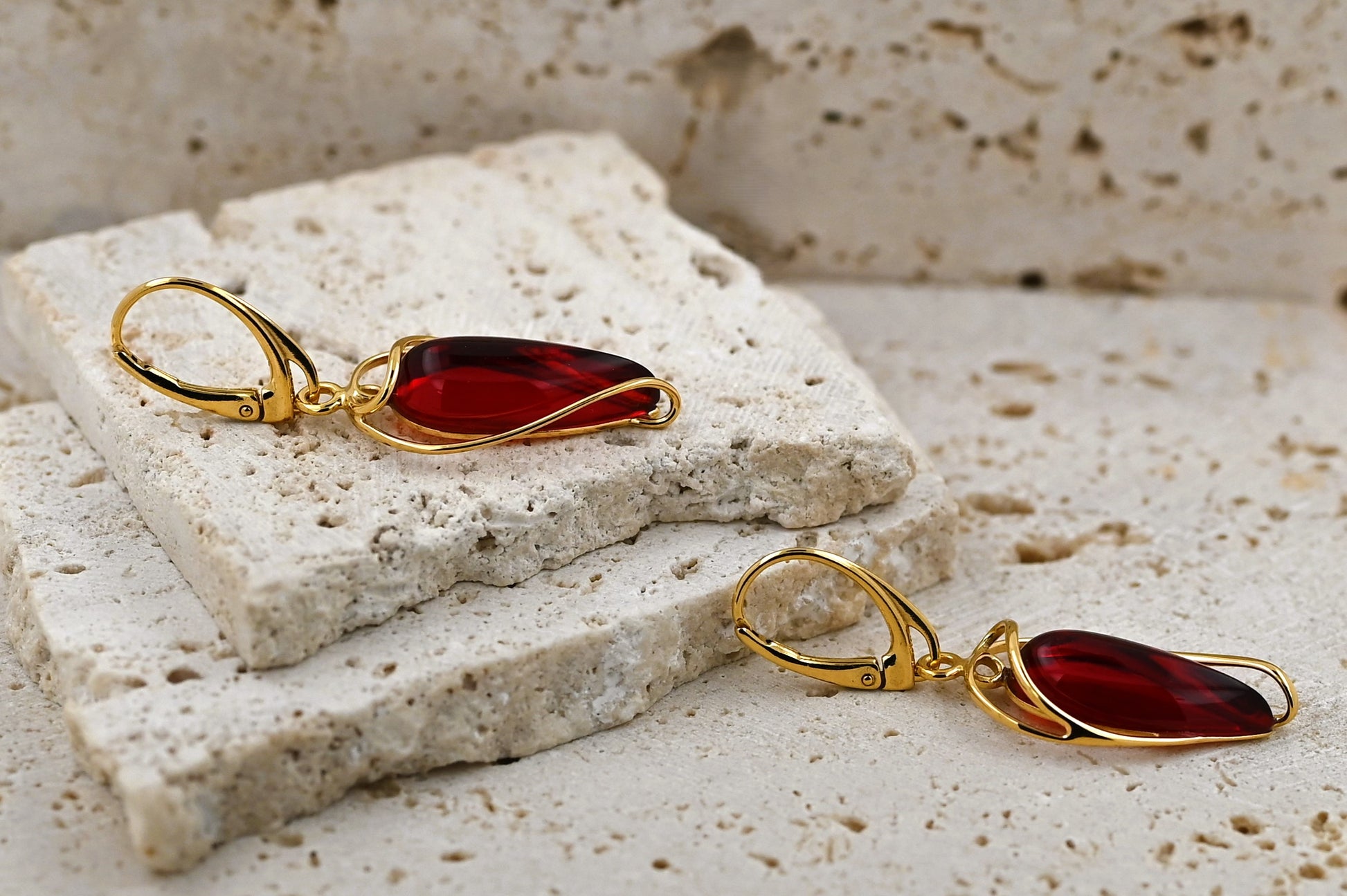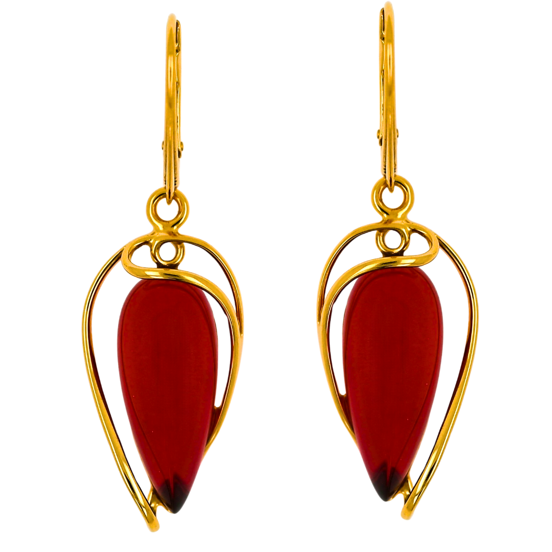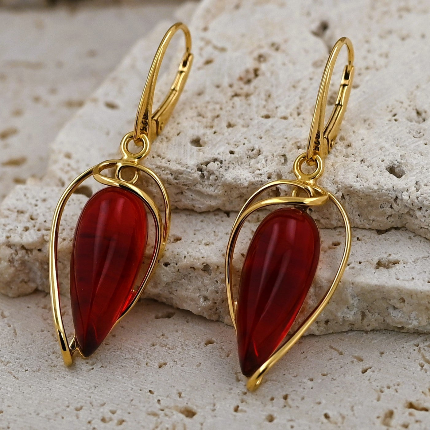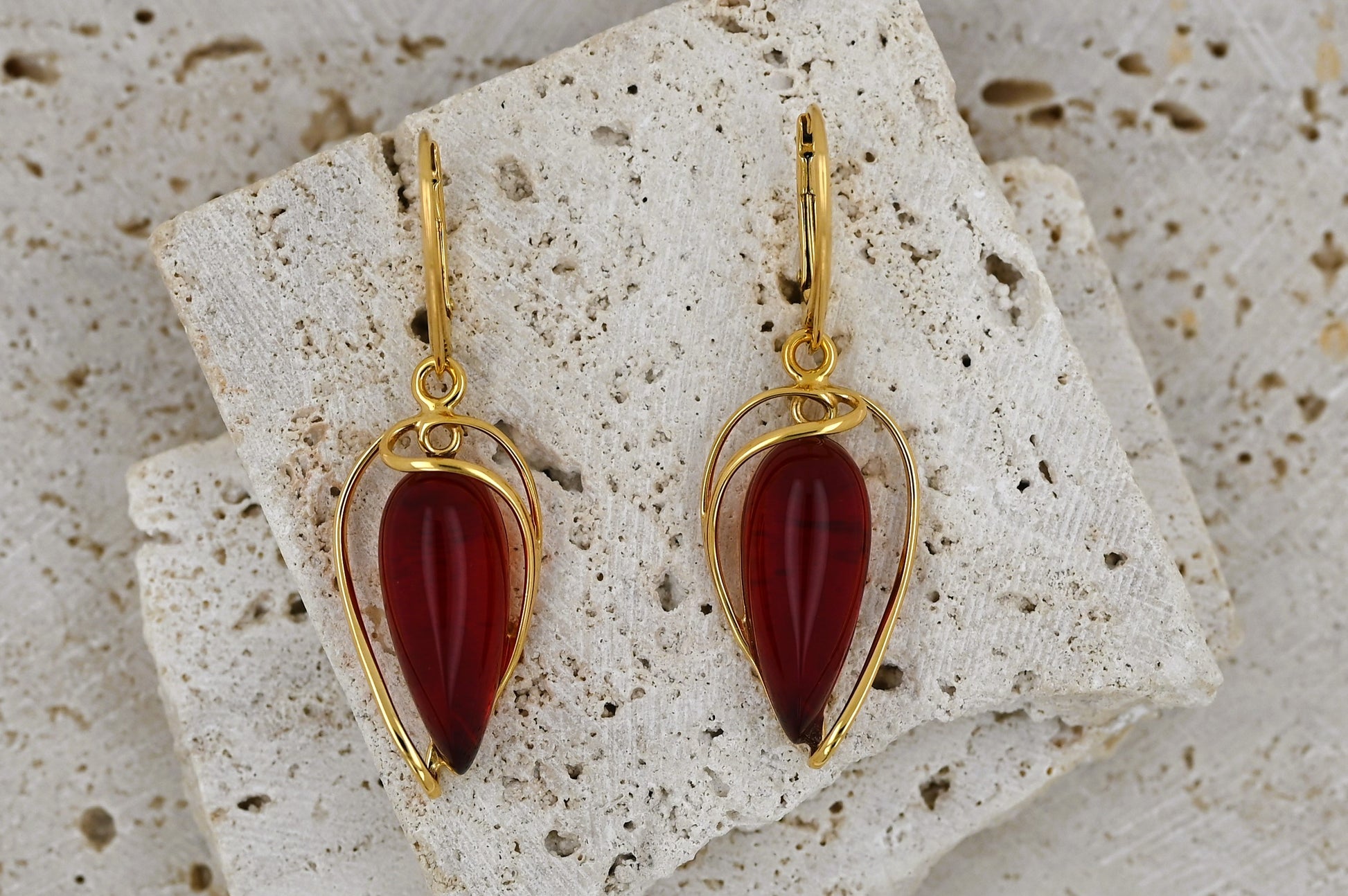 Te wyjątkowe kolczyki z czerwonym bursztynem bałtyckim to połączenie natury i elegancji.