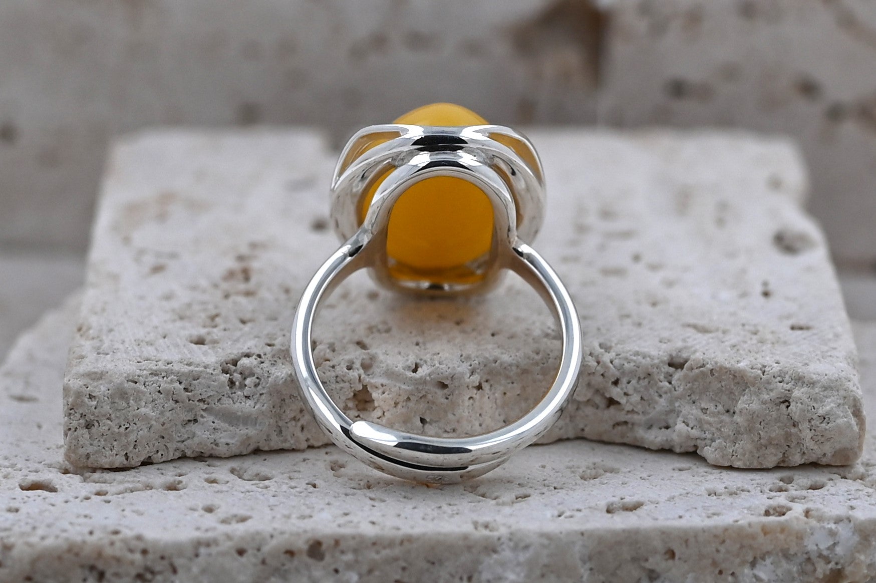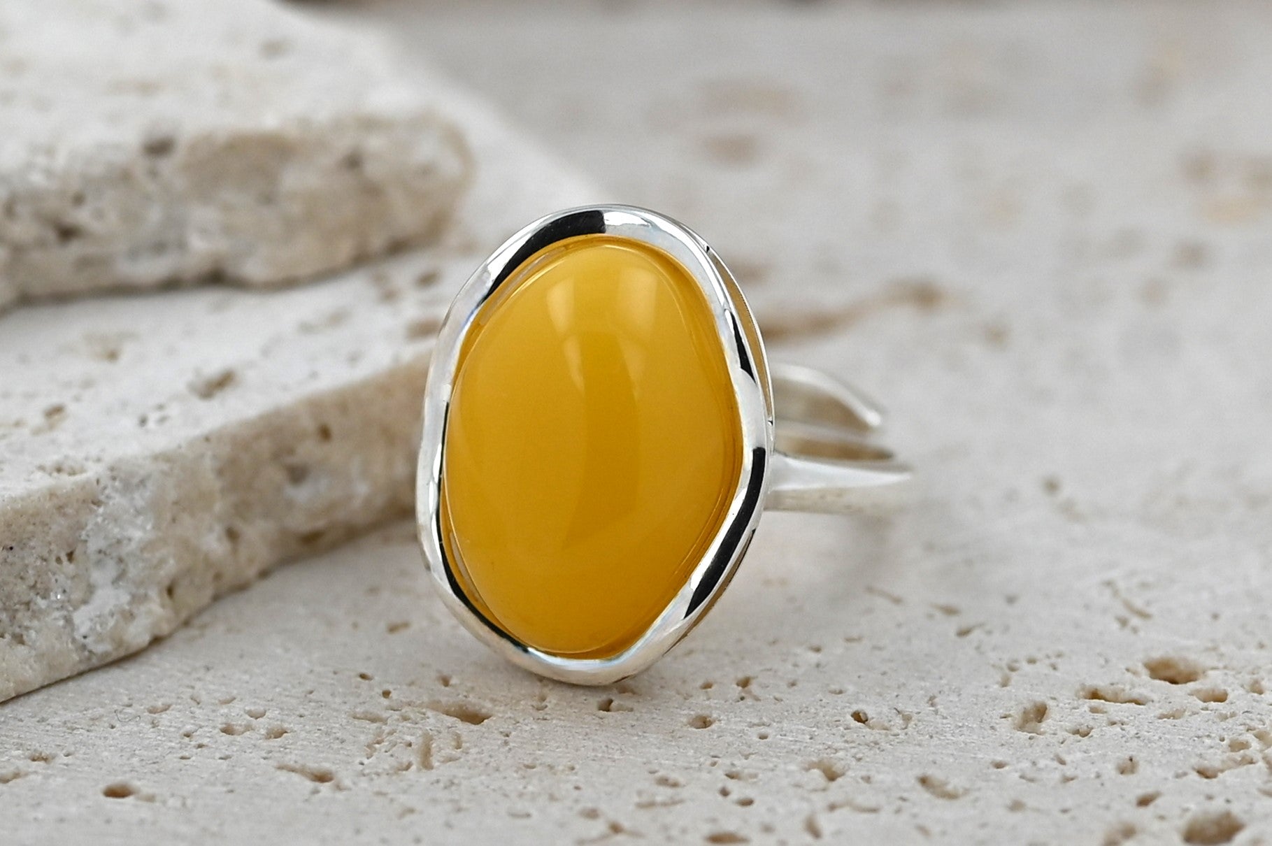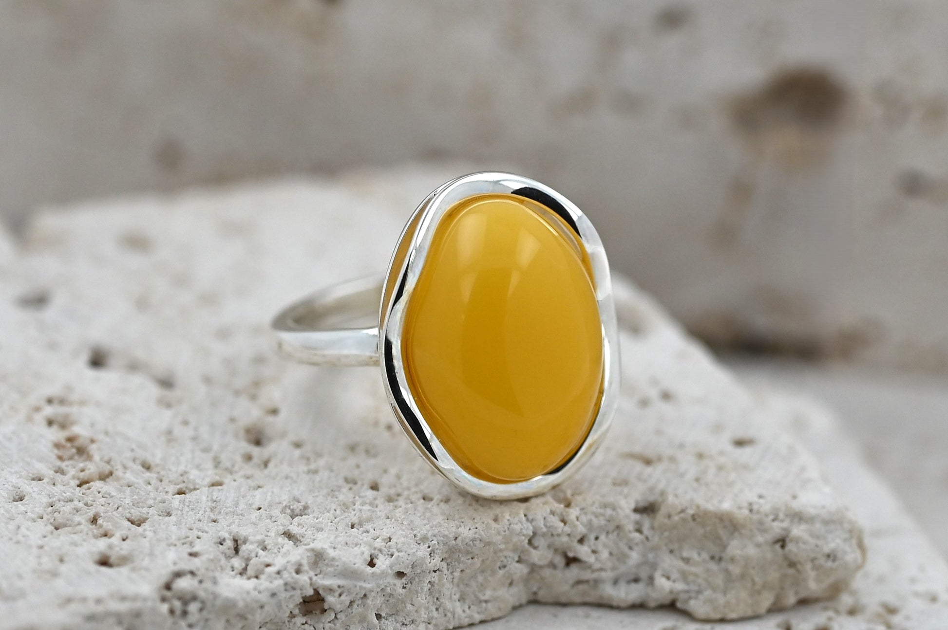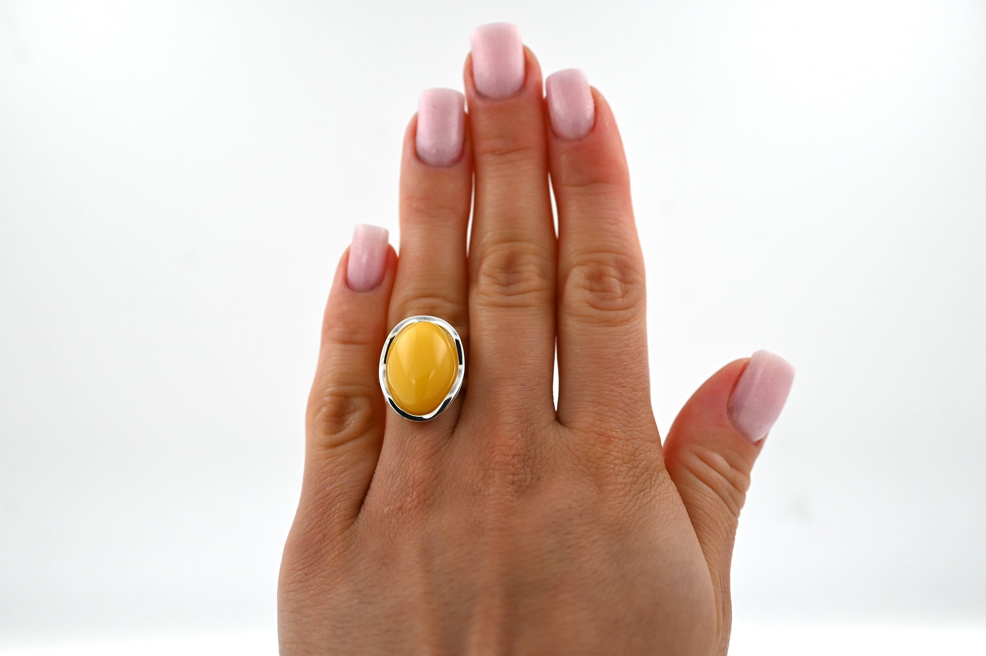 Ten wyjątkowy pierścionek zdobi mleczno-żółty bursztyn bałtycki, ceniony za swoją ciepłą, słoneczną barwę i niepowtarzalny charakter. Każdy kamień jest tworzony przez naturę, dlatego nie ma dwóch identycznych egzemplarzy – Twój pierścionek będzie naprawdę wyjątkowy.