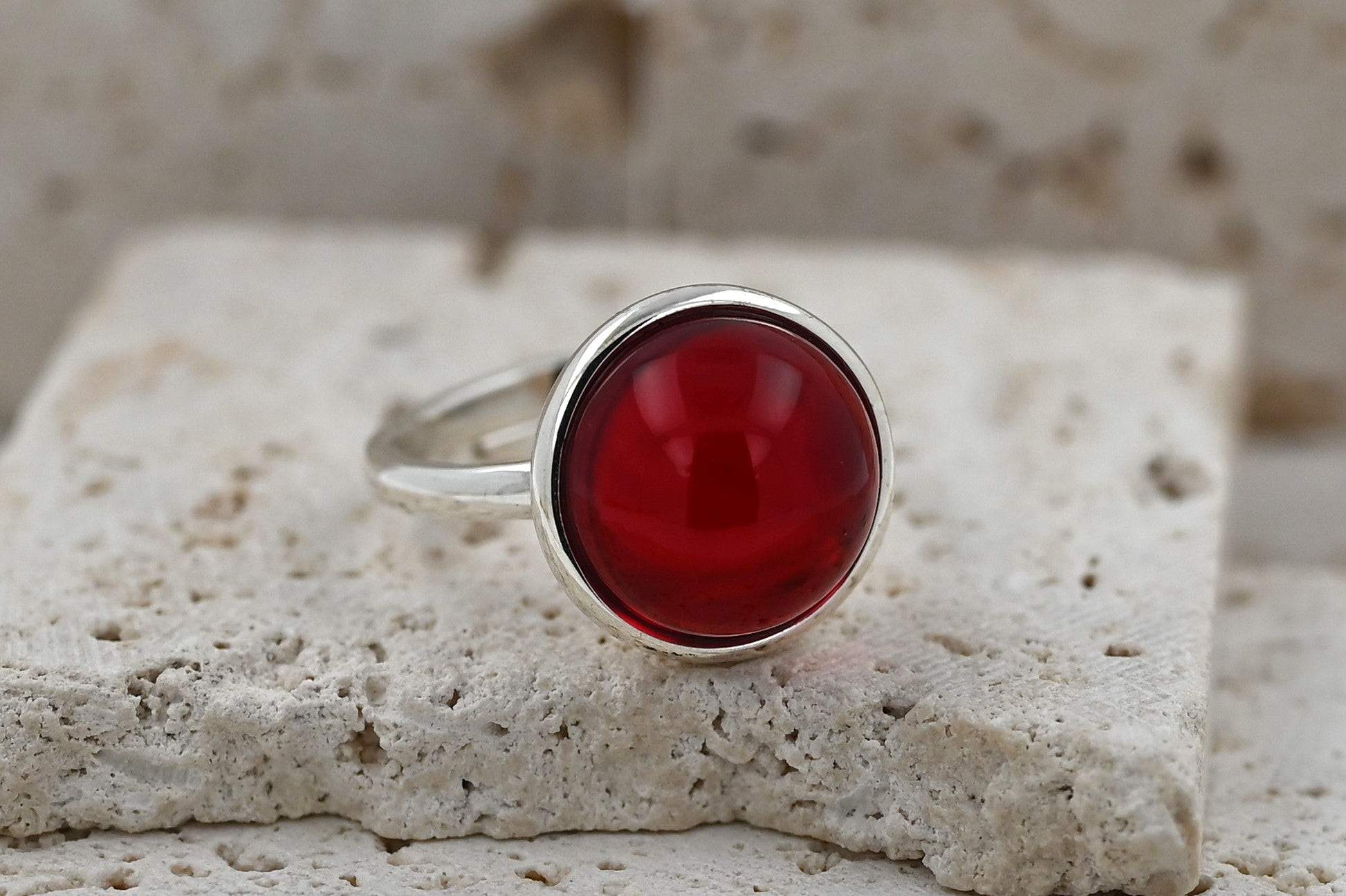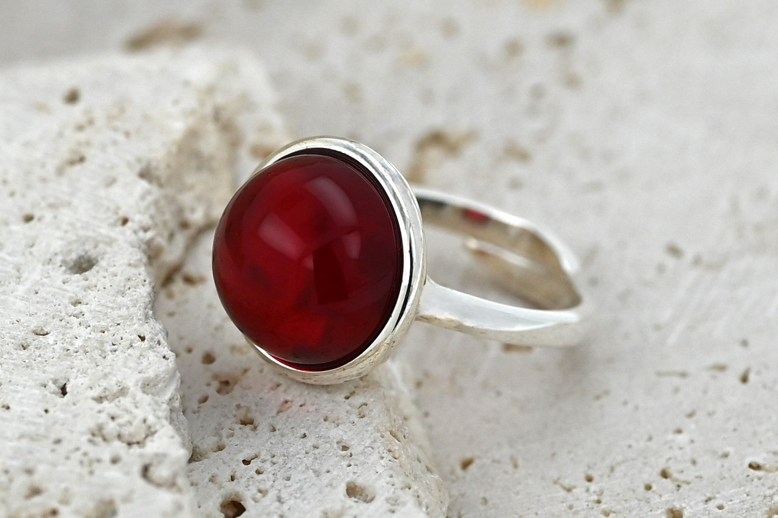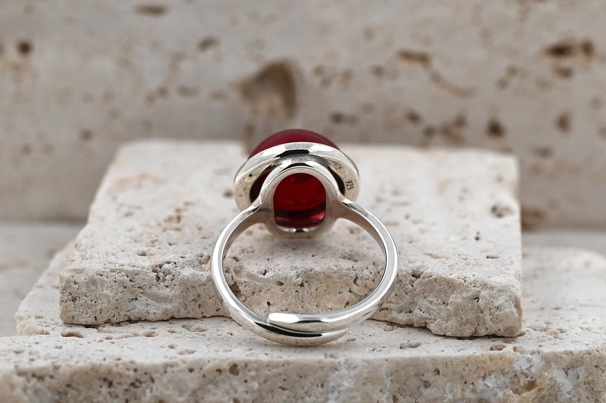Pierścionek Bursztynowa Aura, Czerwony, Srebro 925