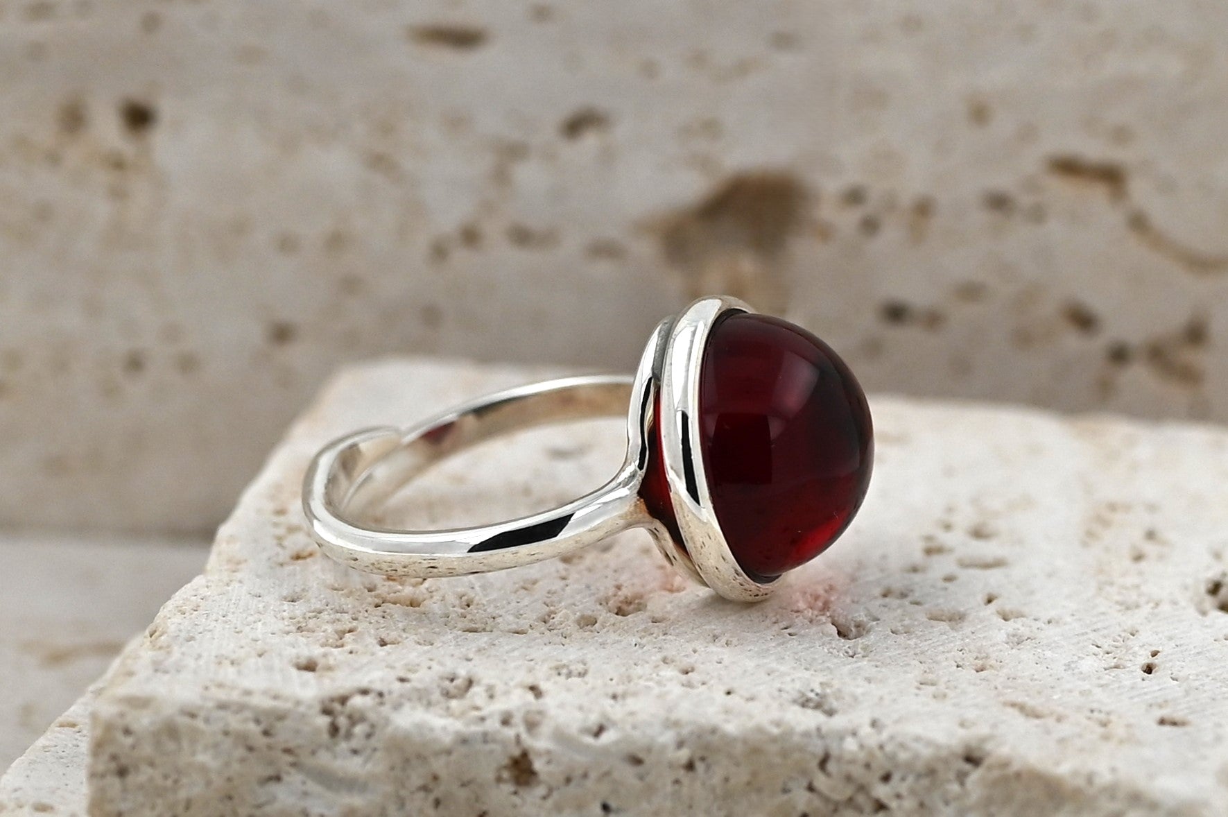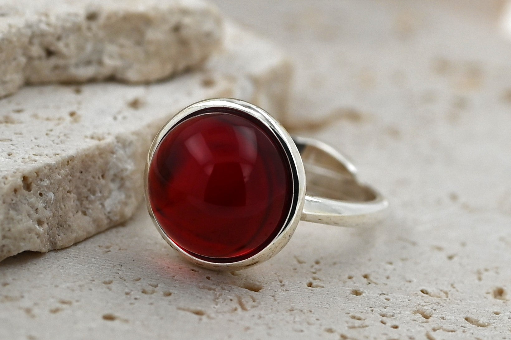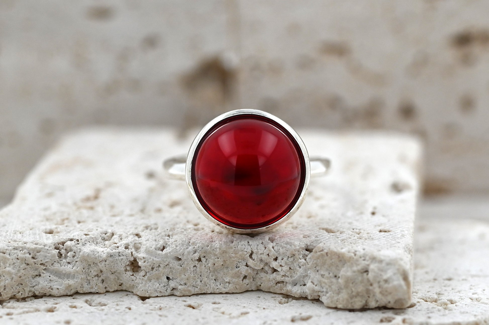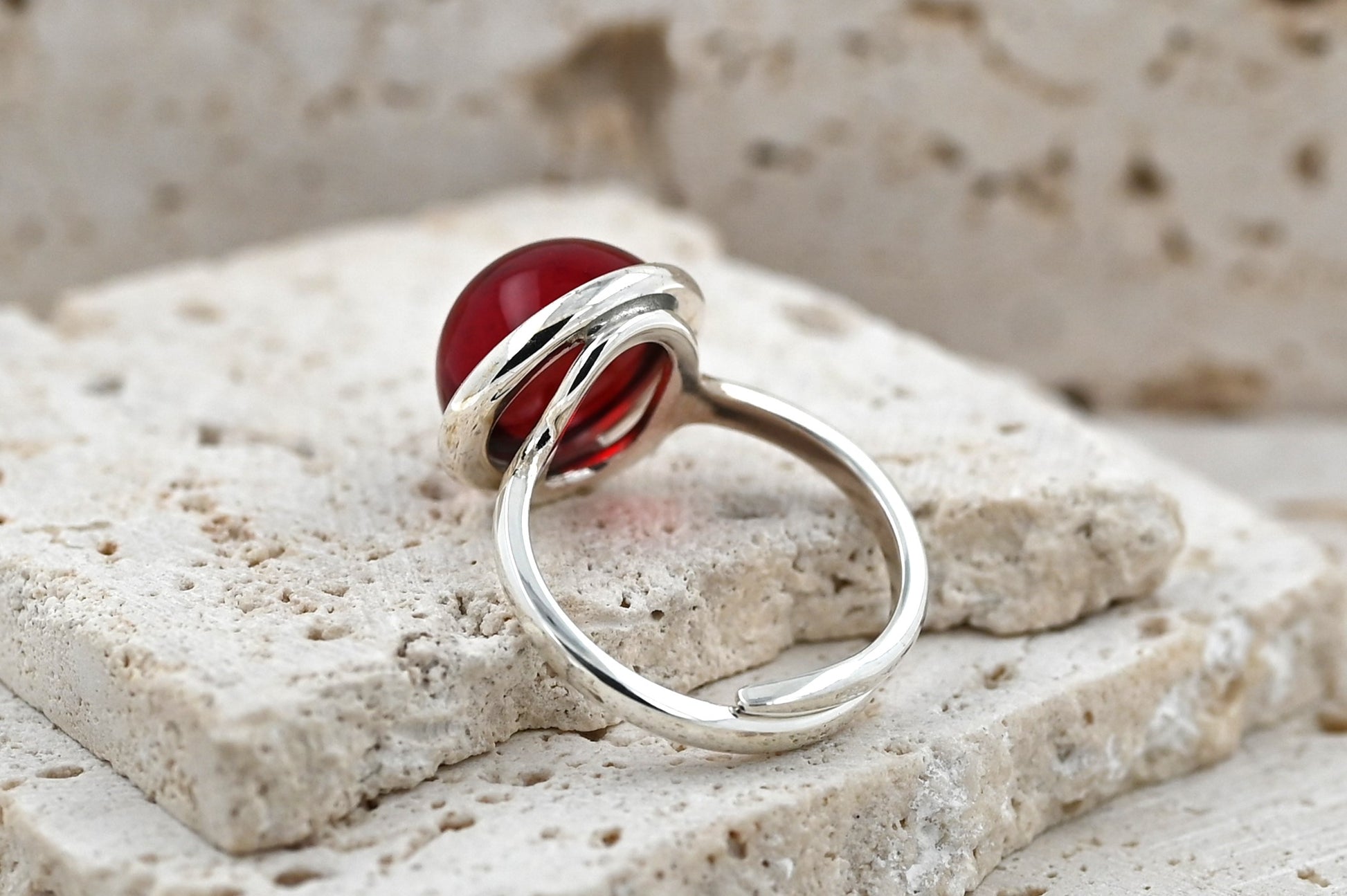 Pierścionek Bursztynowa Aura, Czerwony, Srebro 925