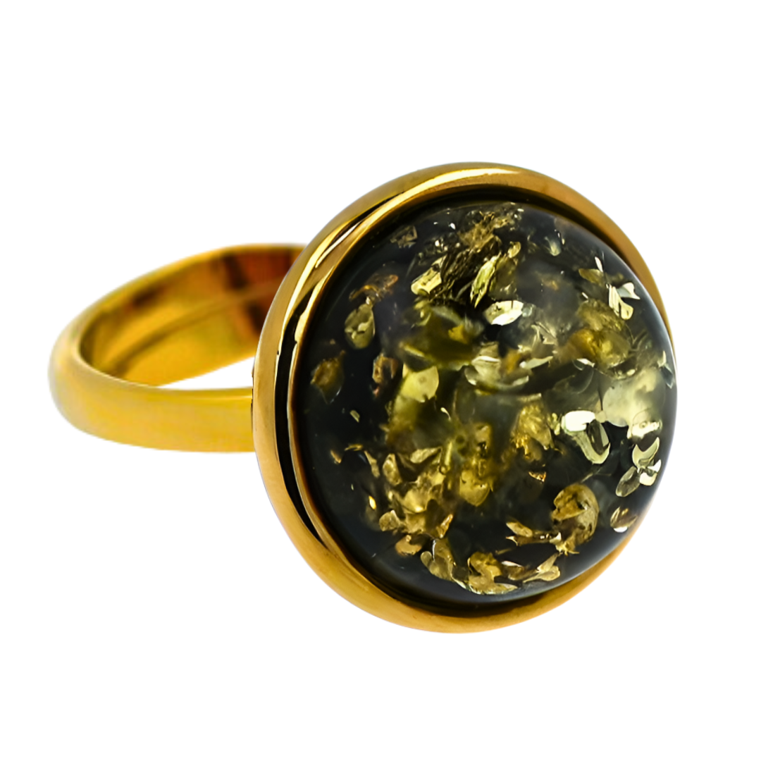 Pierścionek Bursztynowa Aura, Zielony, Pozłacane srebro