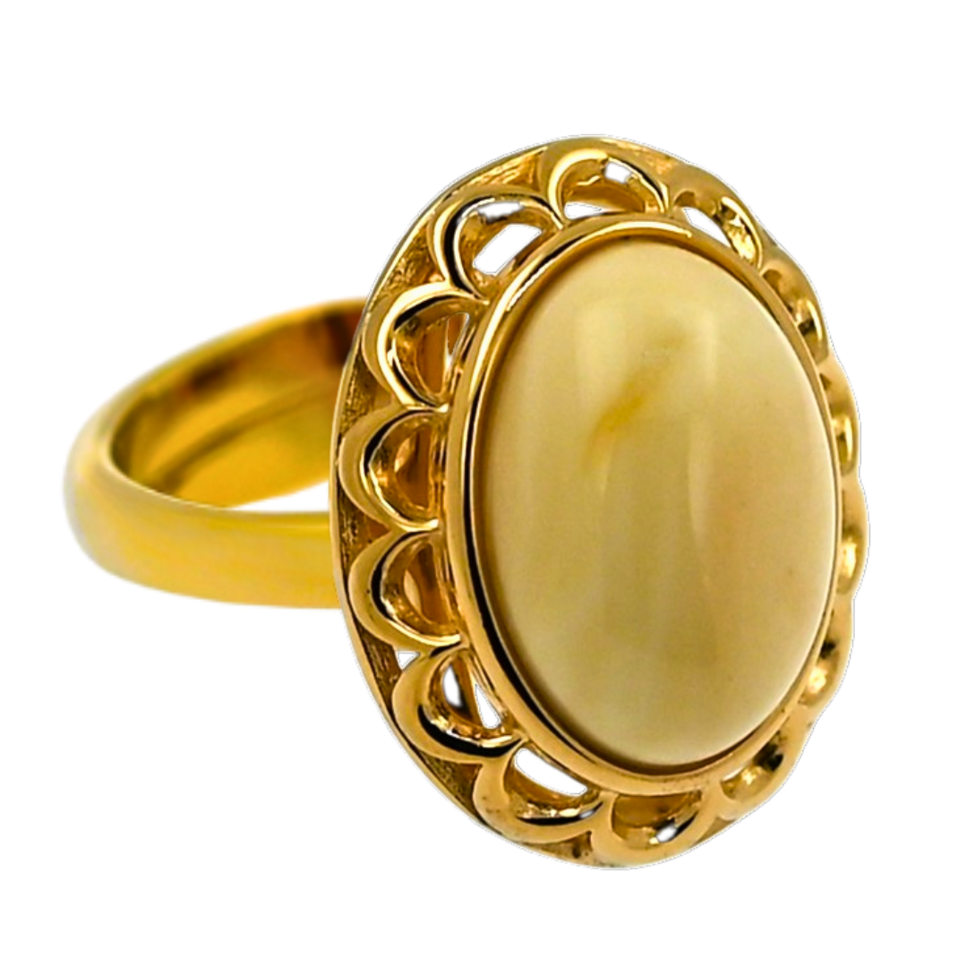 Pierścionek Bursztynowa Elegancja, Mleczny, Pozłacane Srebro