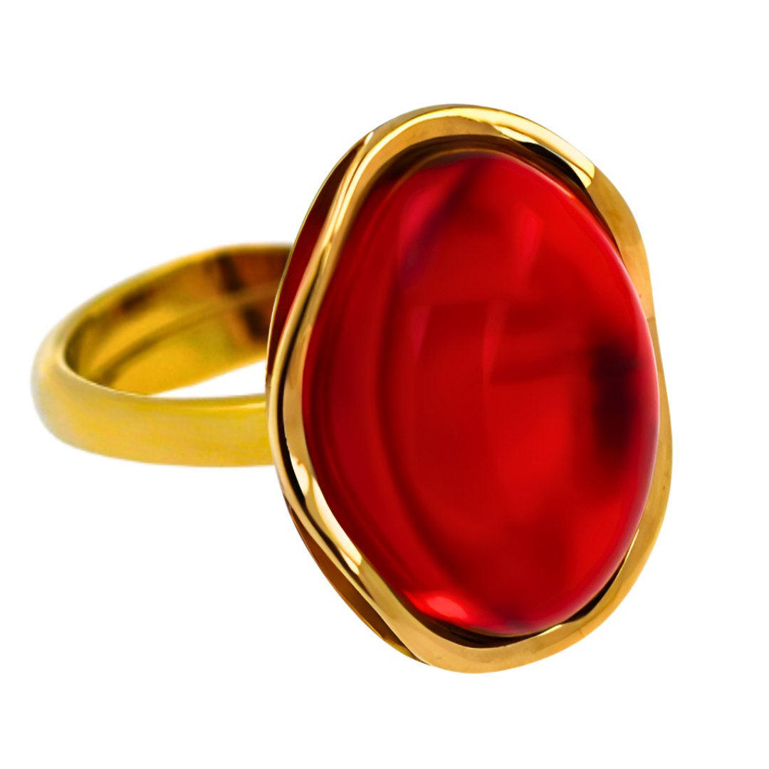 Pierścionek Bursztynowa Fala, Czerwony, Pozłacane srebro