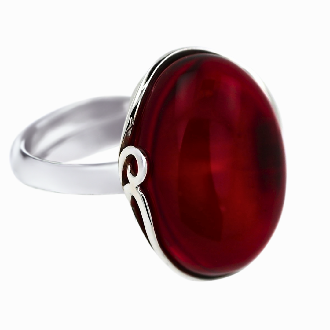 Pierścionek Bursztynowa Harmonia, Czerwony, Srebro 925