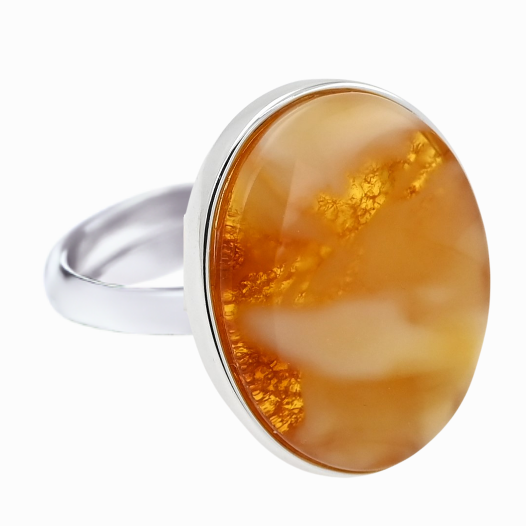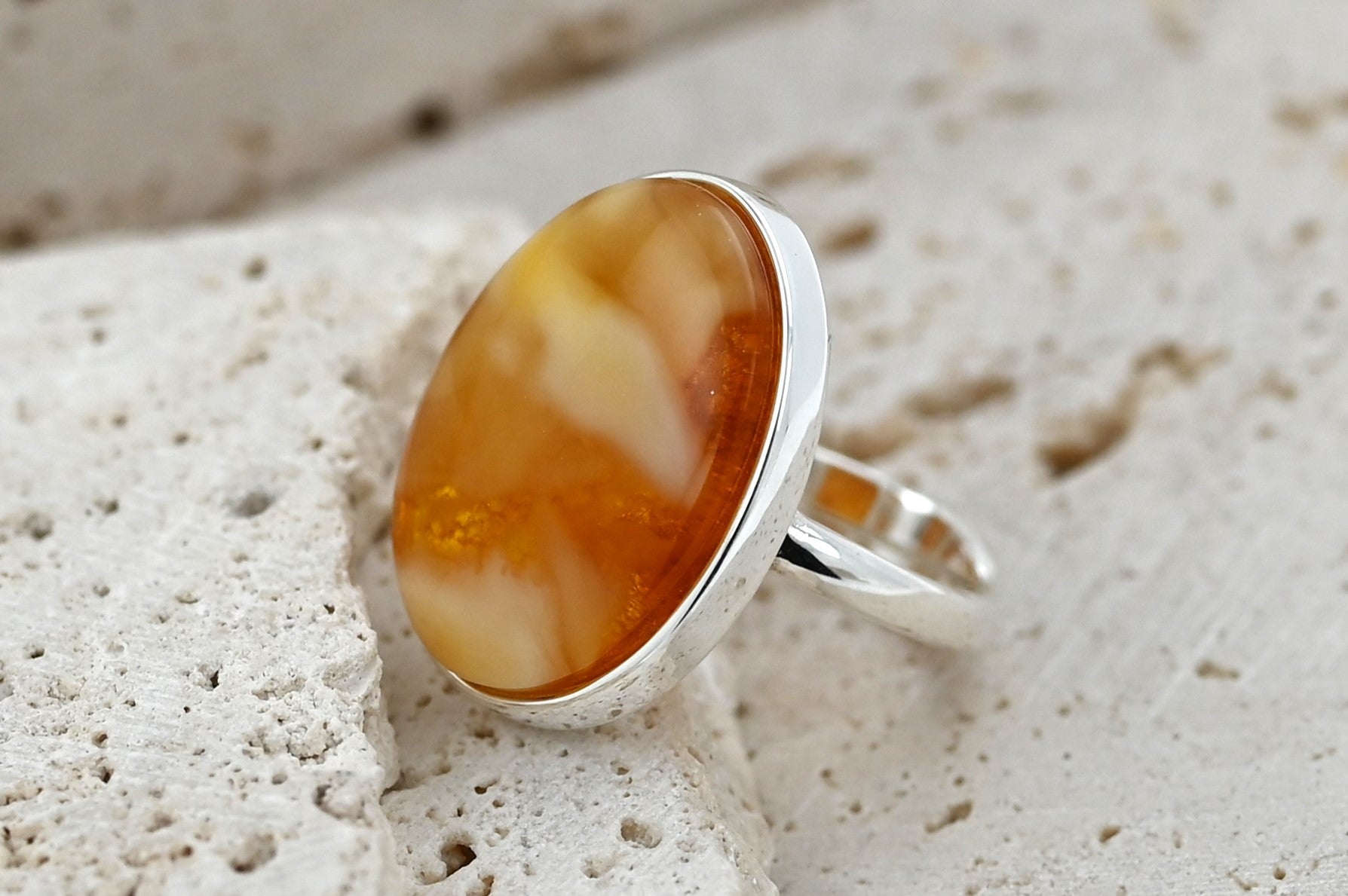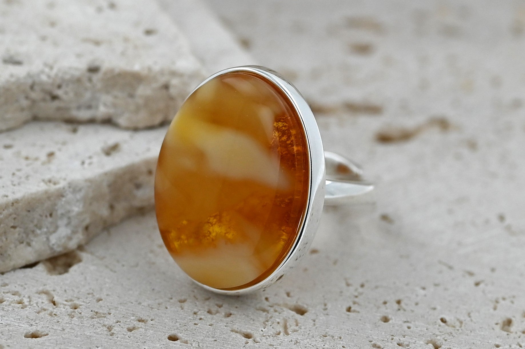 Pierścionek Bursztynowa Mozaika, Karmelowy, Mleczny, Srebro 925