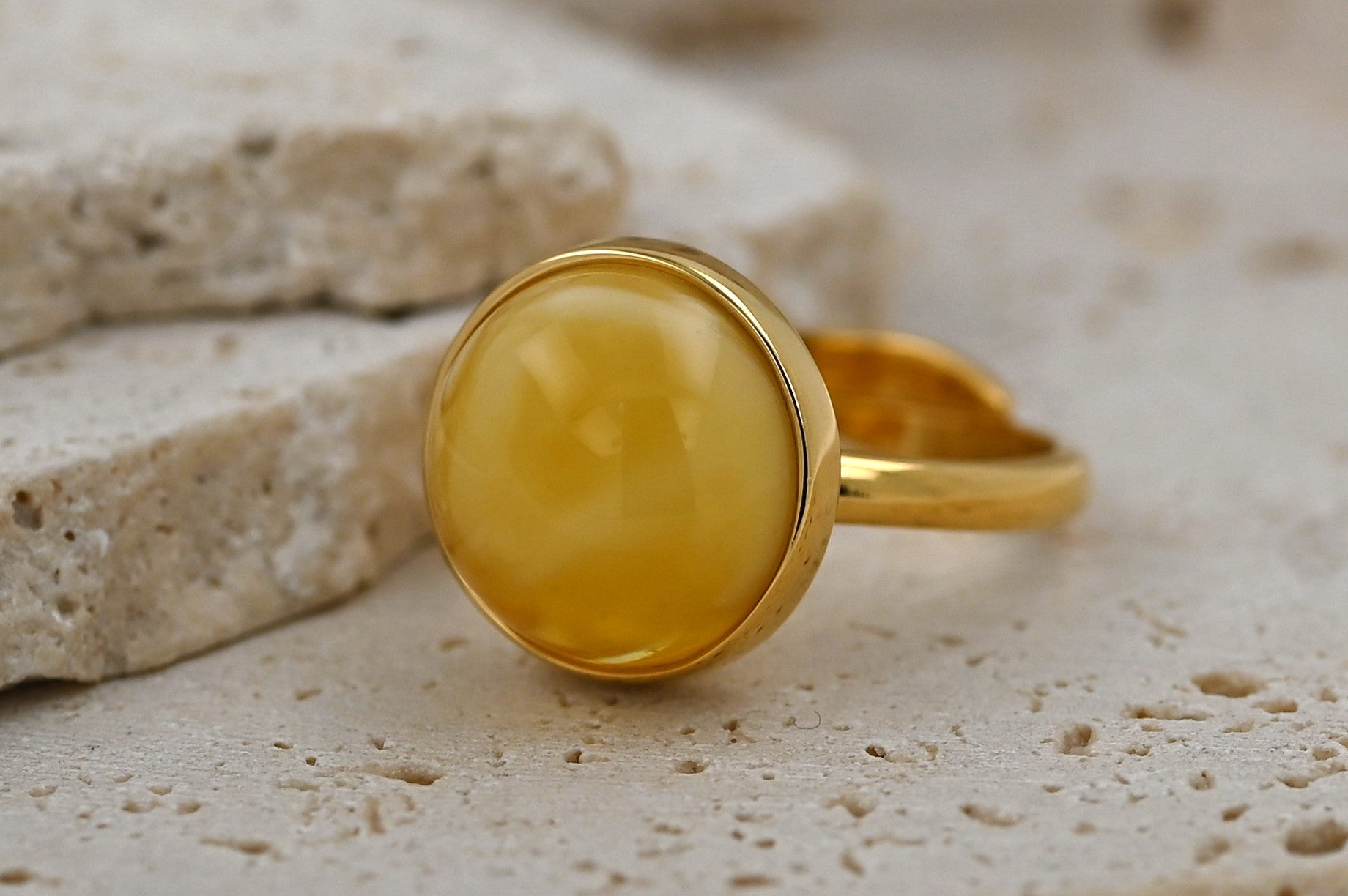 Unikatowy Pierścionek Bursztynowa Aura, Żółty, Pozłącane Srebro 925