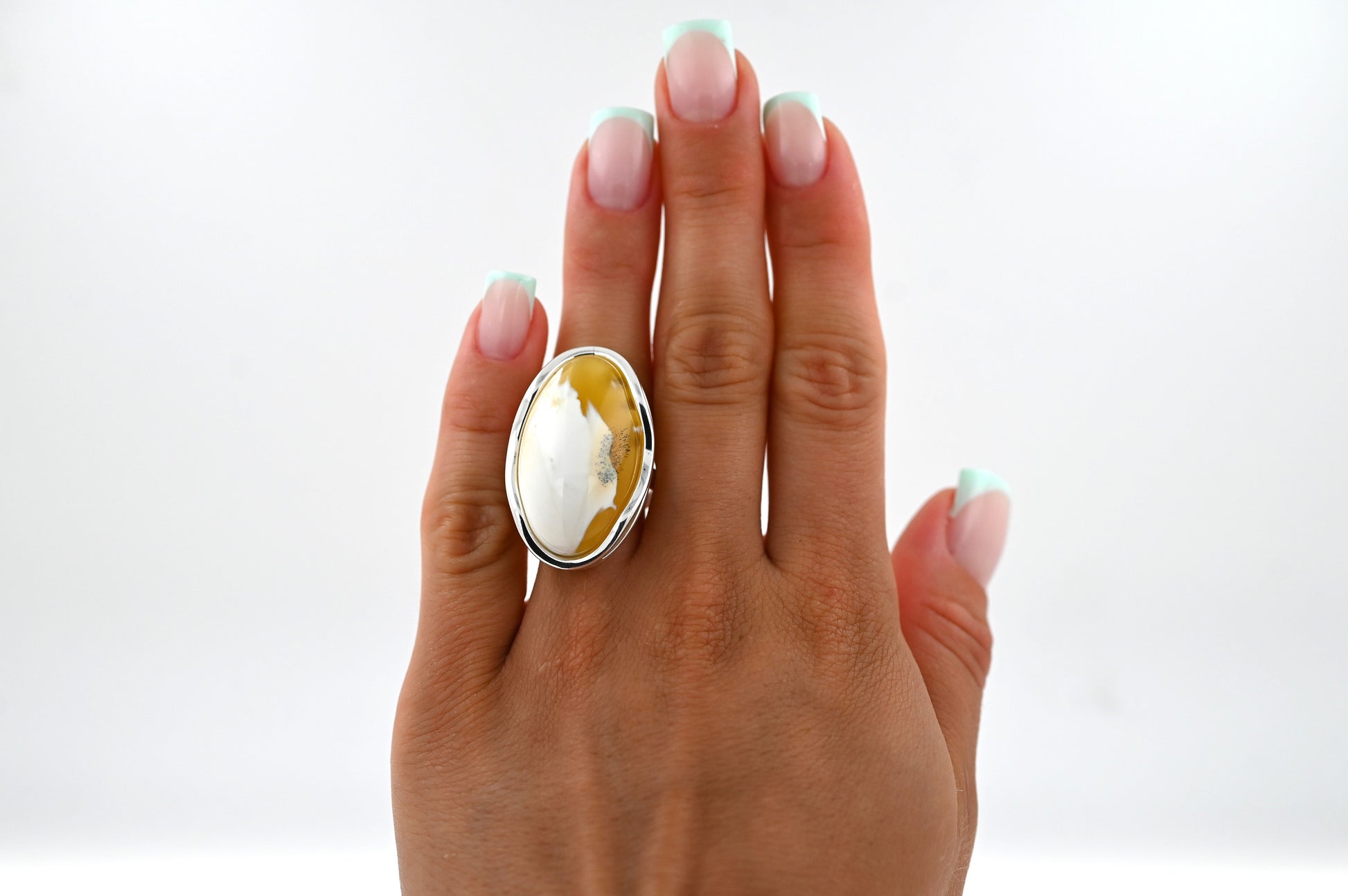 Przedstawiamy wyjątkowy pierścionek z naturalnym bursztynem bałtyckim w mlecznej odmianie, oprawiony w eleganckie srebro próby 925.