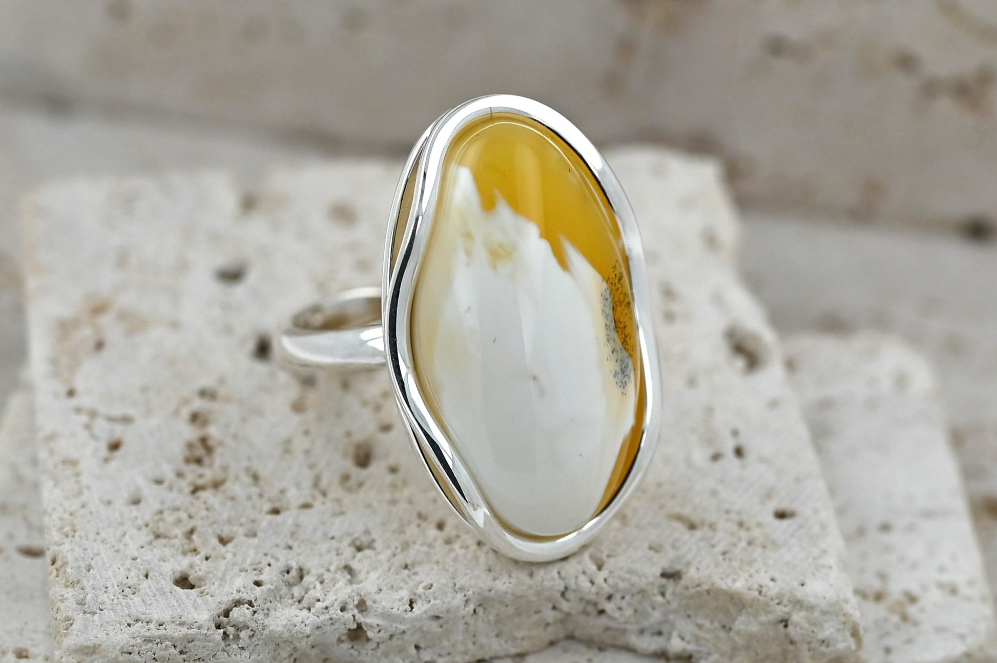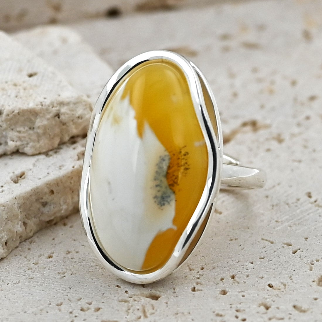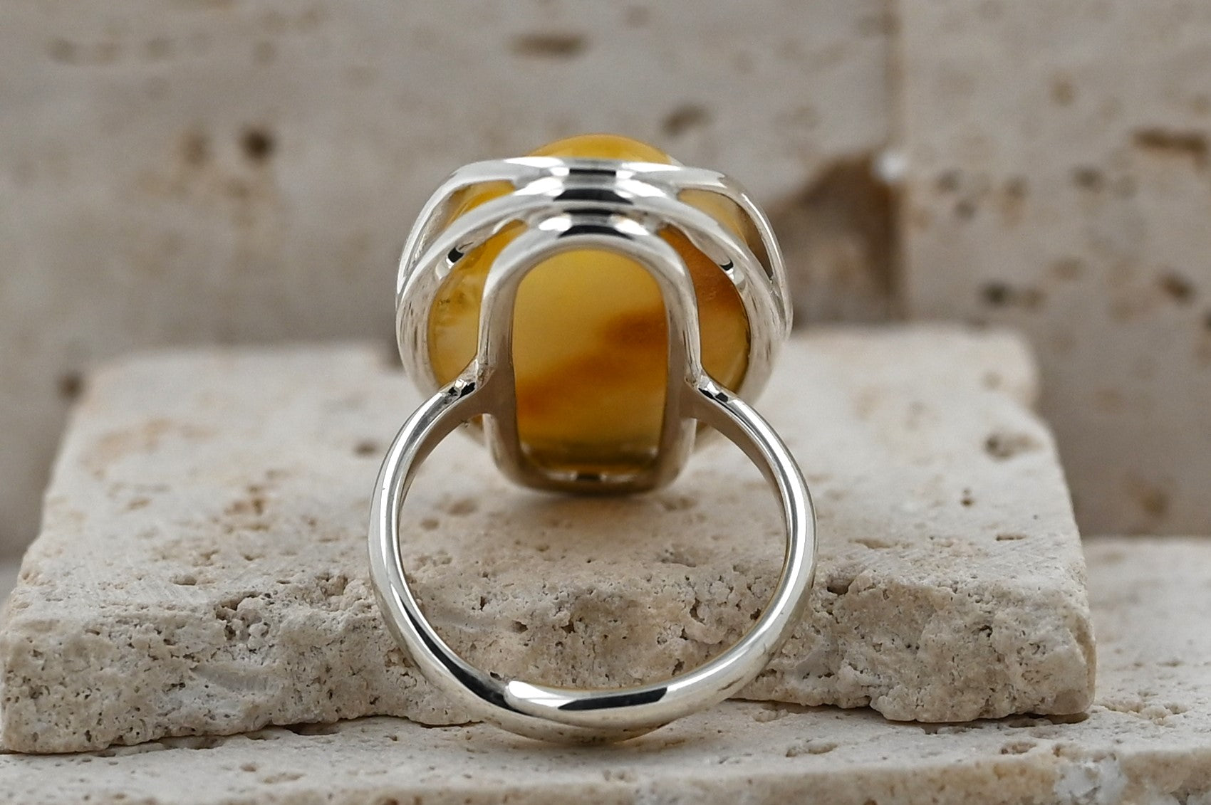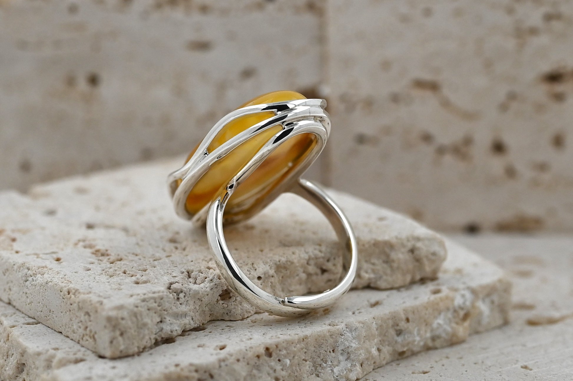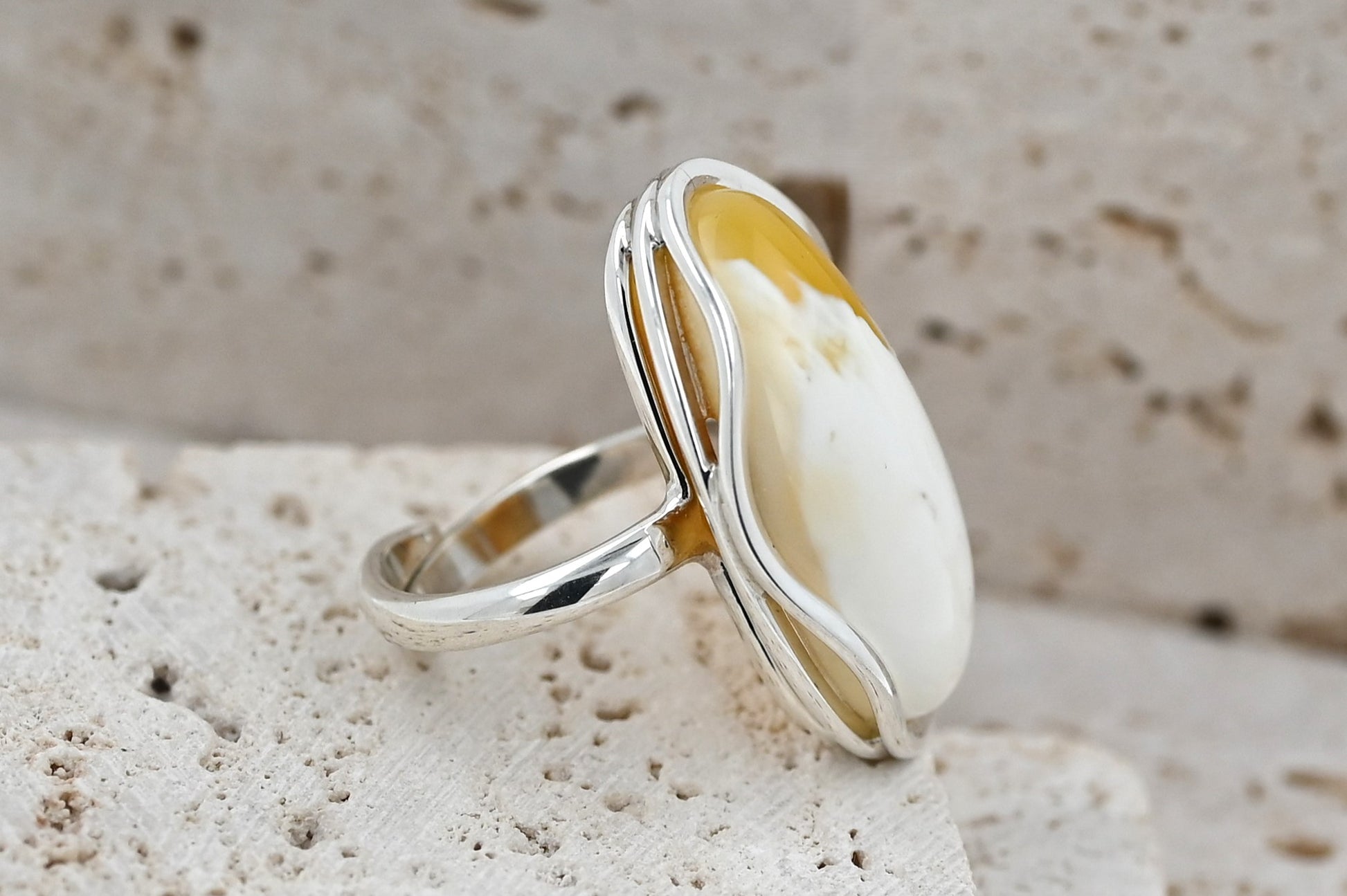 Unikatowy Pierścionek z Bursztynem Bałtyckim | Mleczny Bursztyn ze Srebrną Oprawą 925